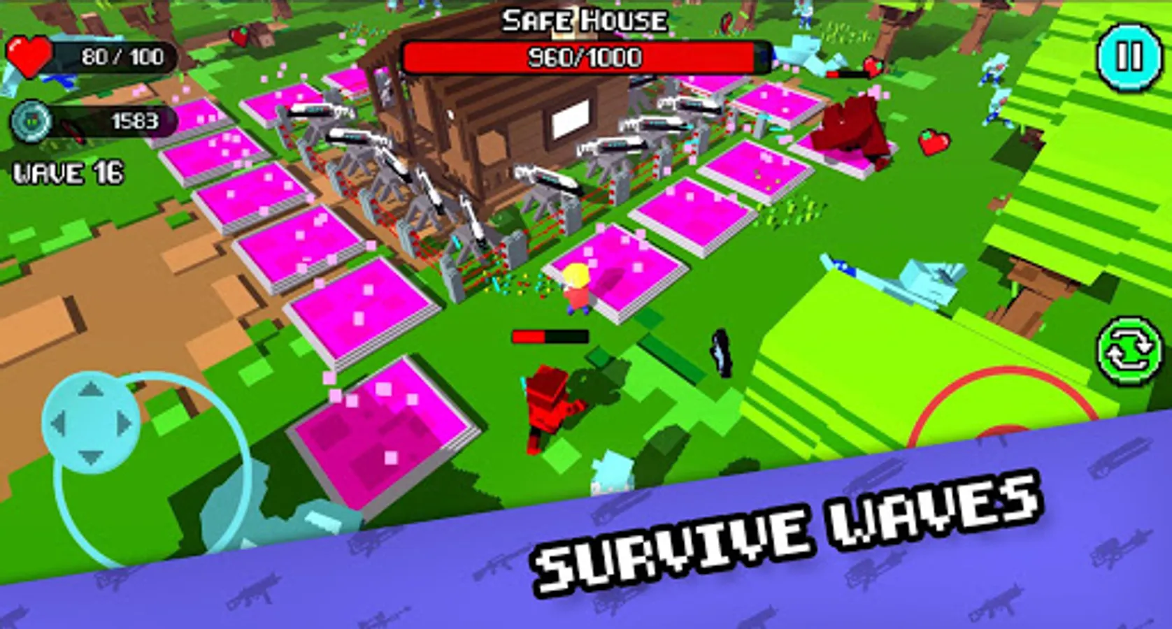 In order to protect the escapees, you’ll have to defeat waves of zombies that will become stronger and faster as the game goes on. You will encounter all kinds of undead, all with their own unique abilities and powers. You'll have a large number of weapons with a voxel art style, which you can choose from to defeat the walking dead.
