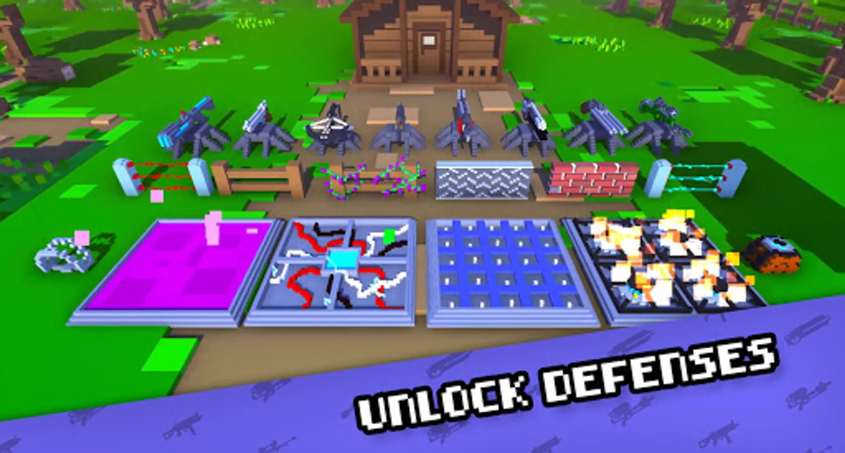 A large amount of maps Lots of unlockable guns Amazing turrets, traps and walls Different kinds of undead Fun gameplay Monthly free updates Multiple funny outfits Home base expansion Normal mode, night mode, endless mode Unique Voxel art style
