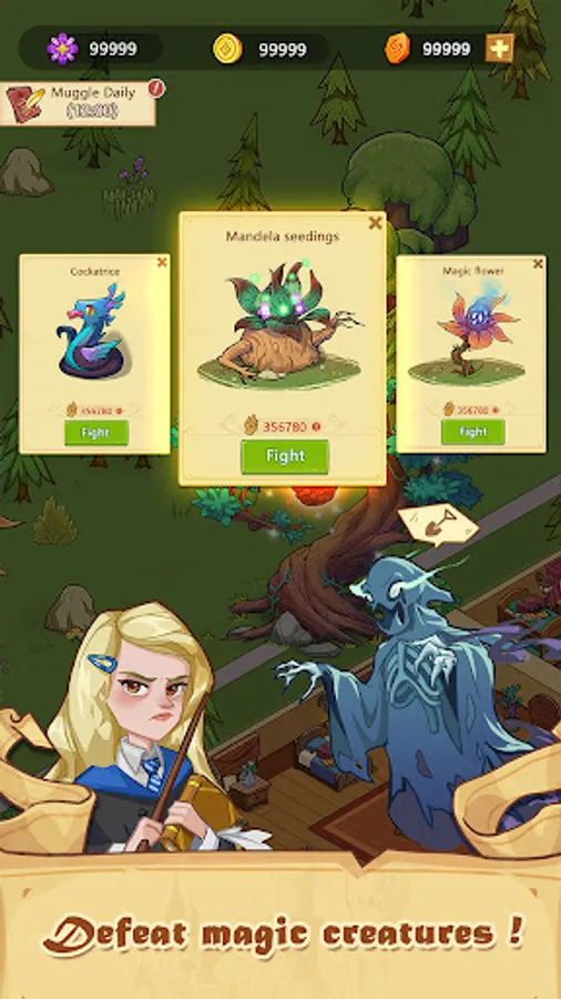 You have different tasks to deal with. After tasks are completed you will get glory to expand your territories, such as Water Country where is around with turbulent rivers and students won’t be disturbed by the outside. You can also upgrade magic trees to get fruits which can be used to increase the wizard star grade. Additionally, launching converting machines are necessary, as muggles need convert into wizards by the machines before they are able to learn magic. Last but not least, hiring new staff in the shops will bring more customers and earn more coins.