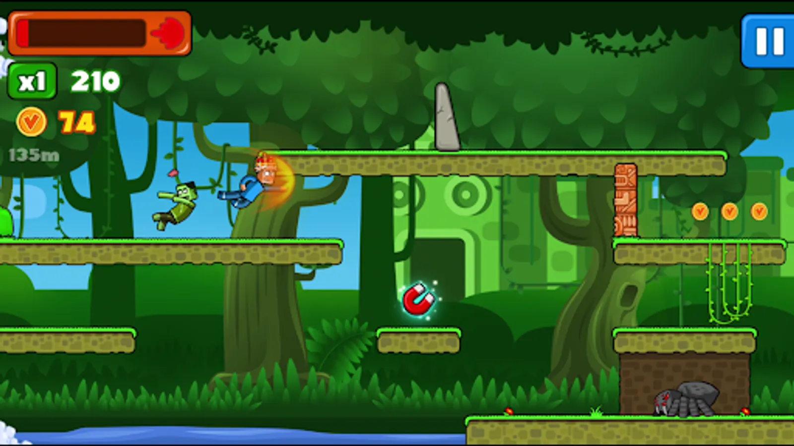 Run, jump, avoid obstacles and cunning enemies and do not forget to gather Vitcoins. Load your power bar to go through walls and push back the inevitably incoming wave.
