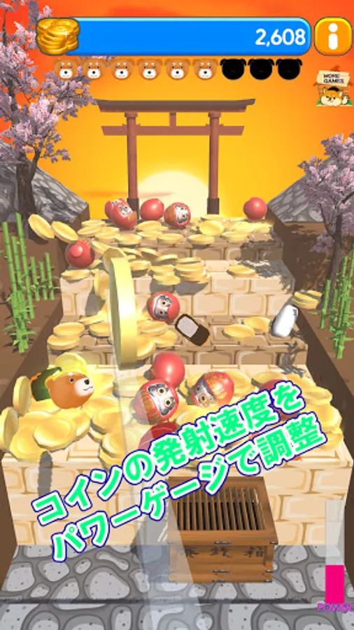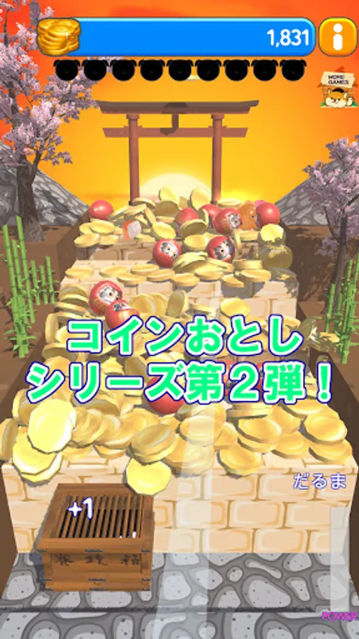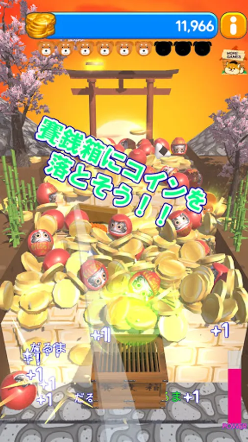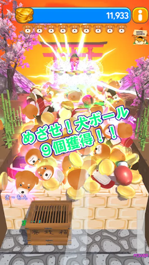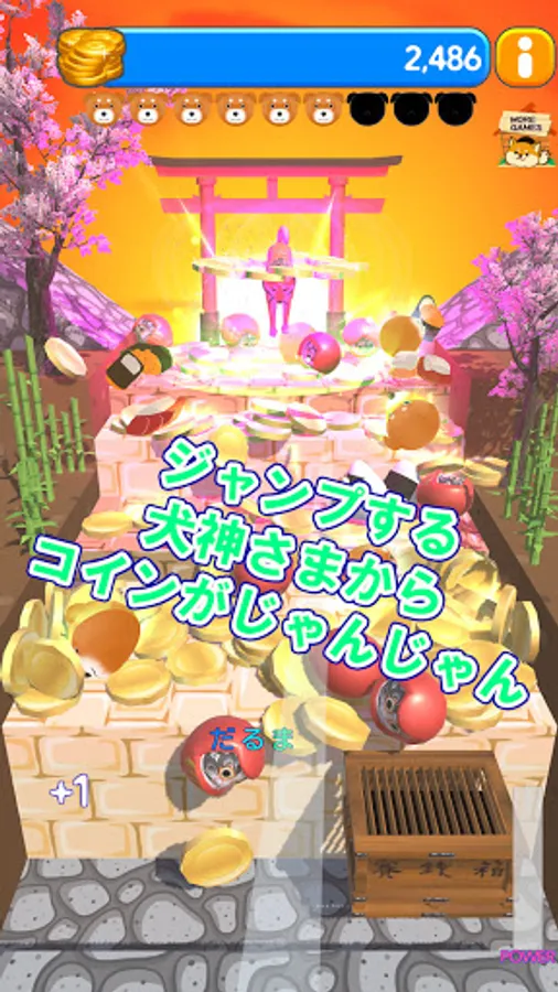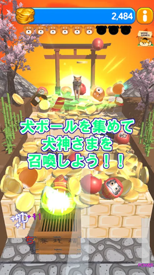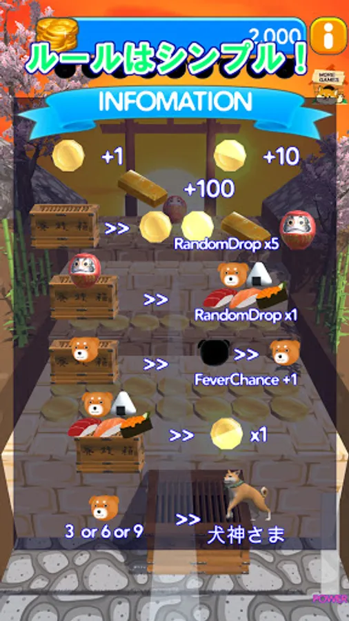 Random dog balls and Japanese food will drop when the "Daruma" is in the money box.