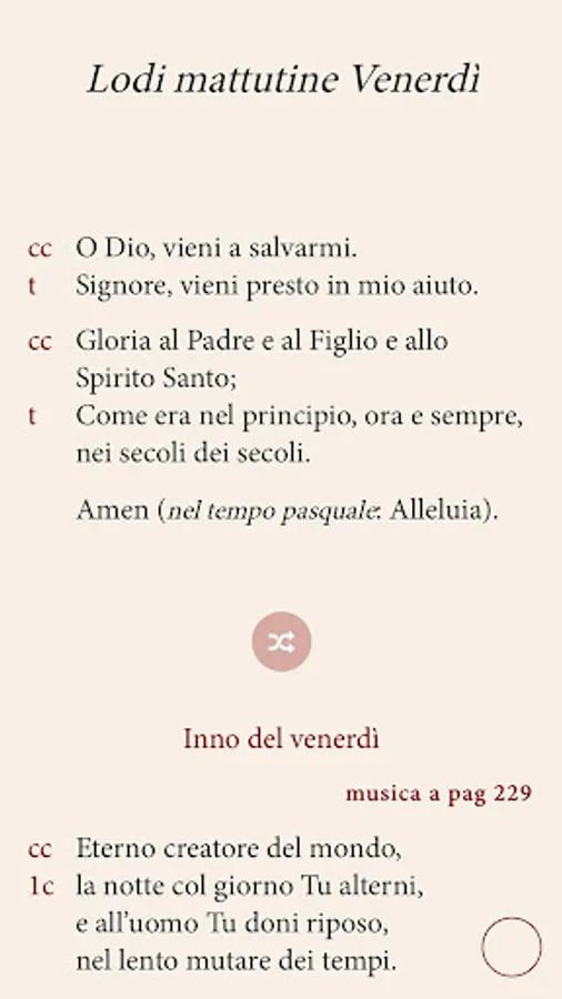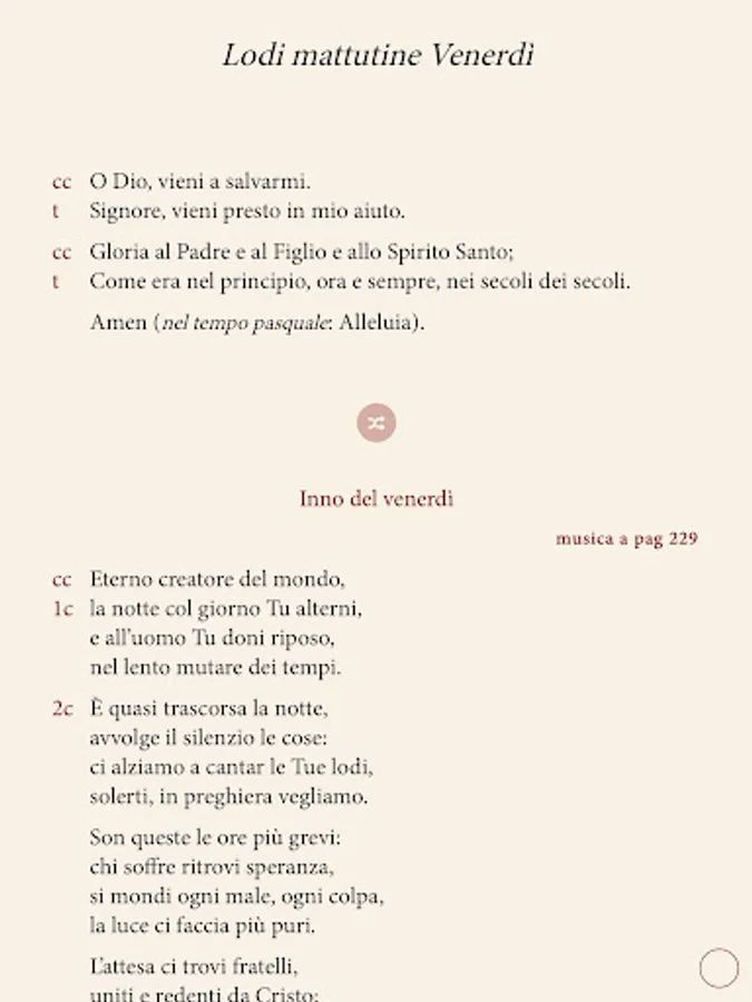 It is the application of "The Book of Hours", published by Jaca Book for the first time in 1975 and republished in 2006. The application contains psalms, hymns, and songs for everyday personal and community prayer.