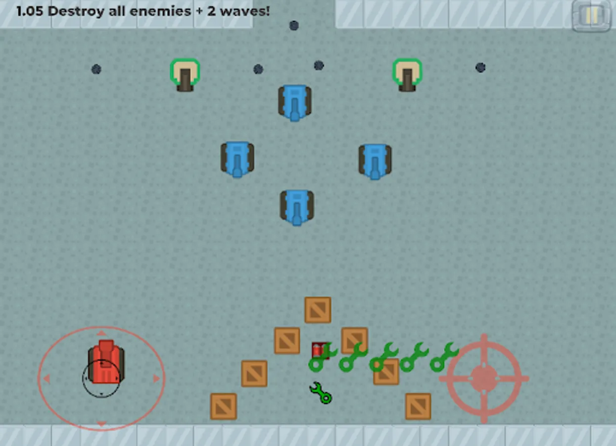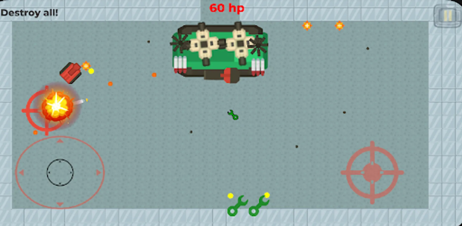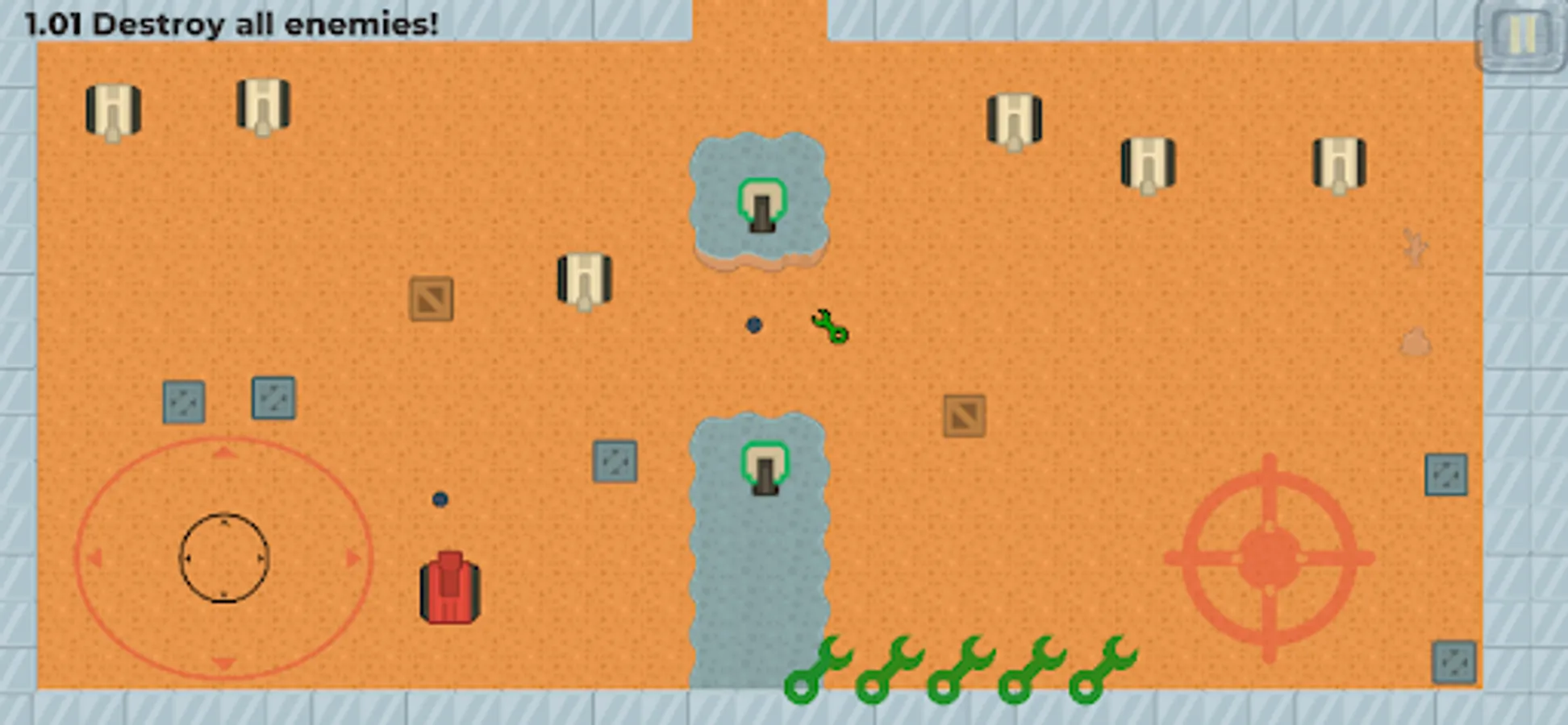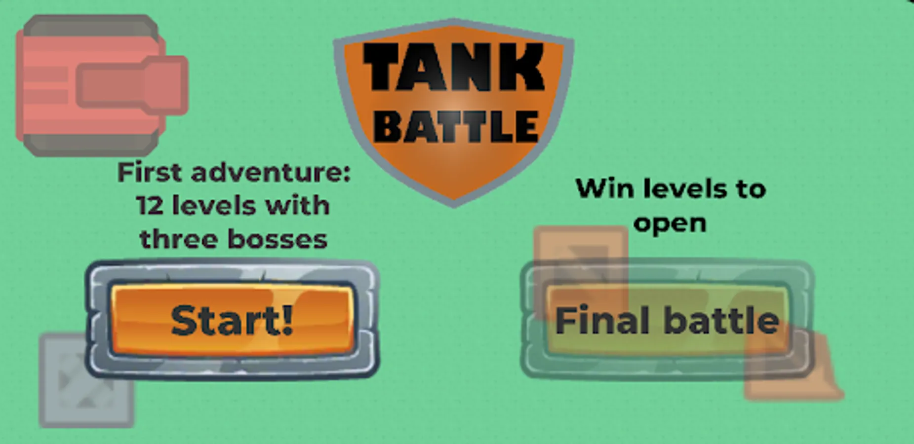 12 levels (3 of them - levels against super tanks) and one bonus level with a super boss! The game has opponents of varying difficulty and bosses that are not easy to destroy! Have a fun game!