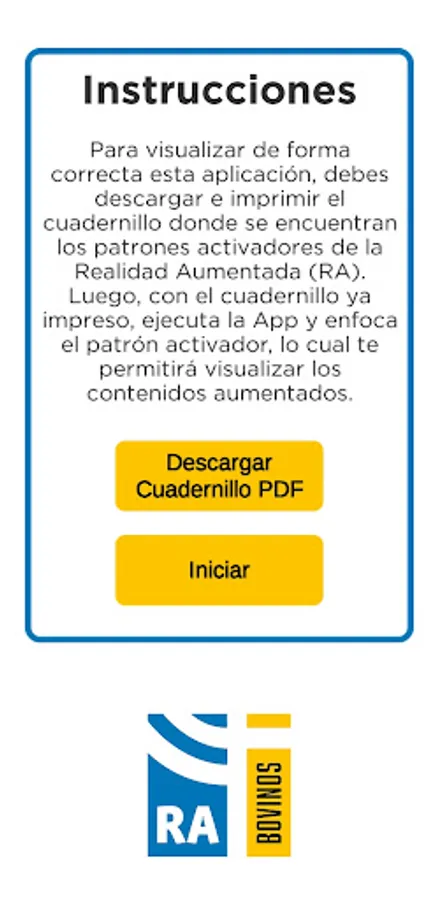 To be able to visualize the elements of Augmented Reality it is necessary to have physically printed the booklet corresponding to this application.