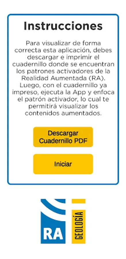 To be able to visualize the elements of Augmented Reality it is necessary to have physically printed the booklet corresponding to this application.