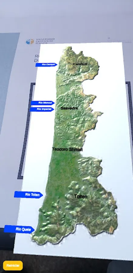 UCT RA Geology is an Application that uses Augmented Reality with which you can understand the topographic profile of the Araucanía Region, its volcanoes and geographical features.