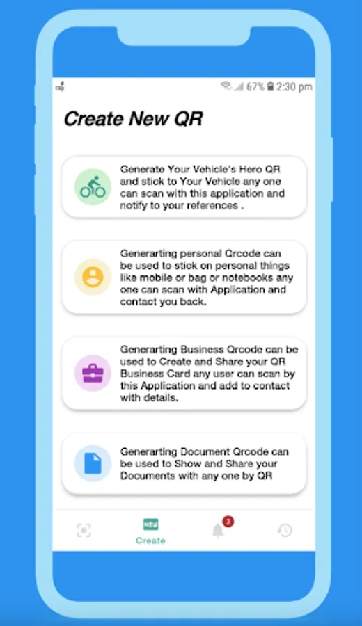 This app allows to generate Encrypted QR for your personal use or for Vehicle and for Business .