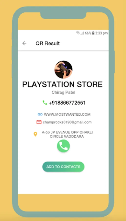 3 - Business QR - can be generated and share to any one by any application . the QR will be scanned by other user and can directly add to contact .