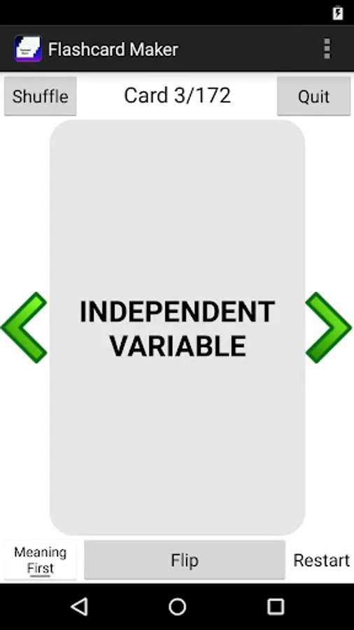 - A View-Only mode which displays all the cards in the order that they were created in. Users can freely maneuver throughout the deck and shuffle it.