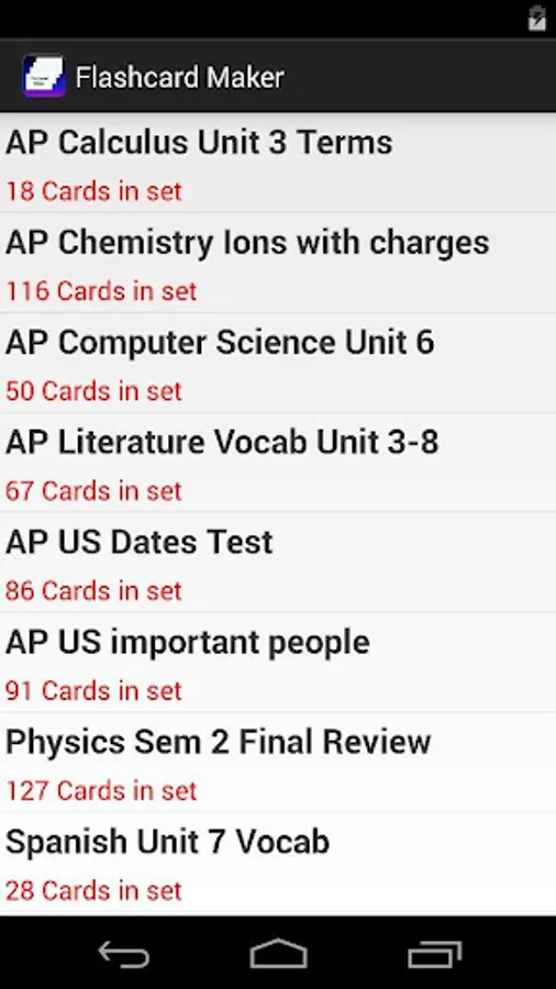 -Ability to create a set for any subject or test necessary. All cards are separated into their own unique sets.