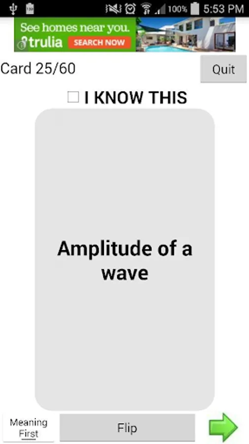 -A Review Mode which first shuffles the set and displays the cards. Users can run through the deck and mark the terms that are easily recognizable. At the end of the deck, they will be prompted to create a new deck containing only the terms that were not marked.