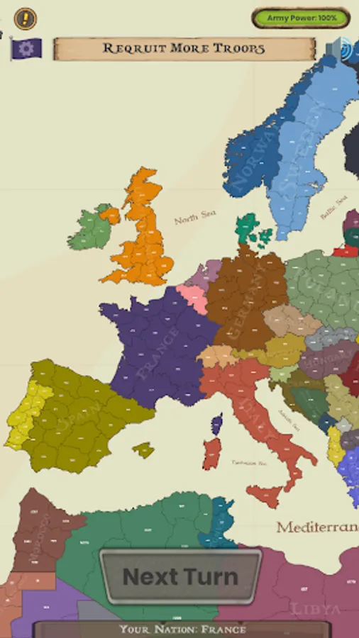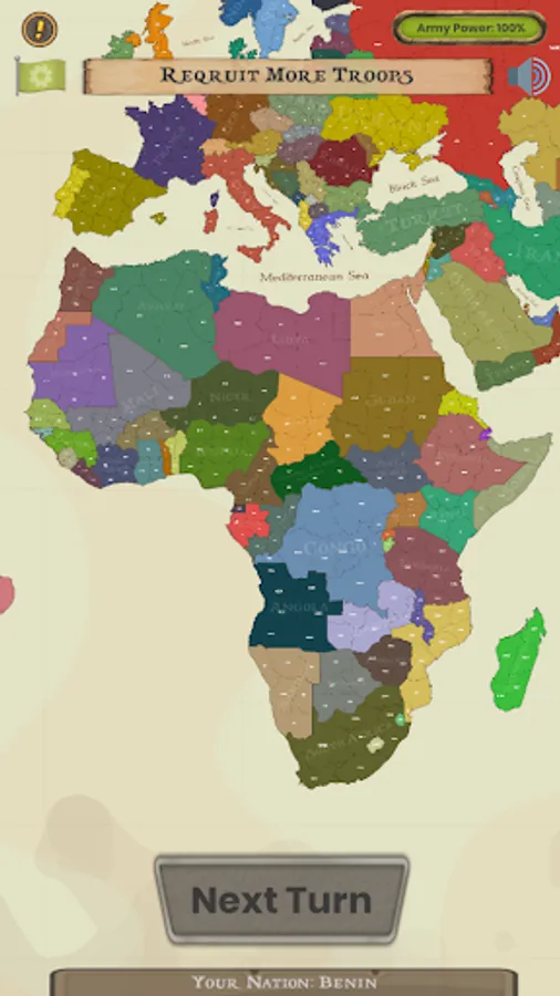 Conquer regions one by one and grow your armies. Destroy your enemies and become the only ruler of the whole simulated world!