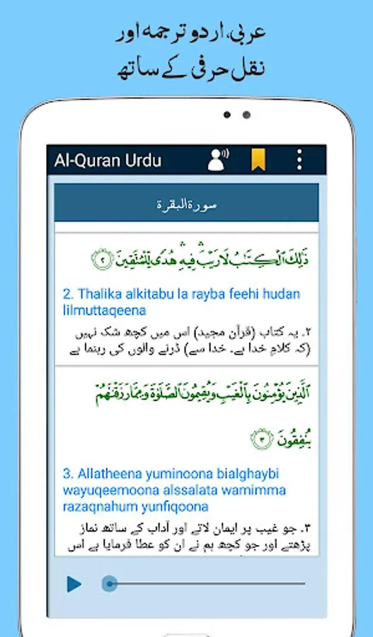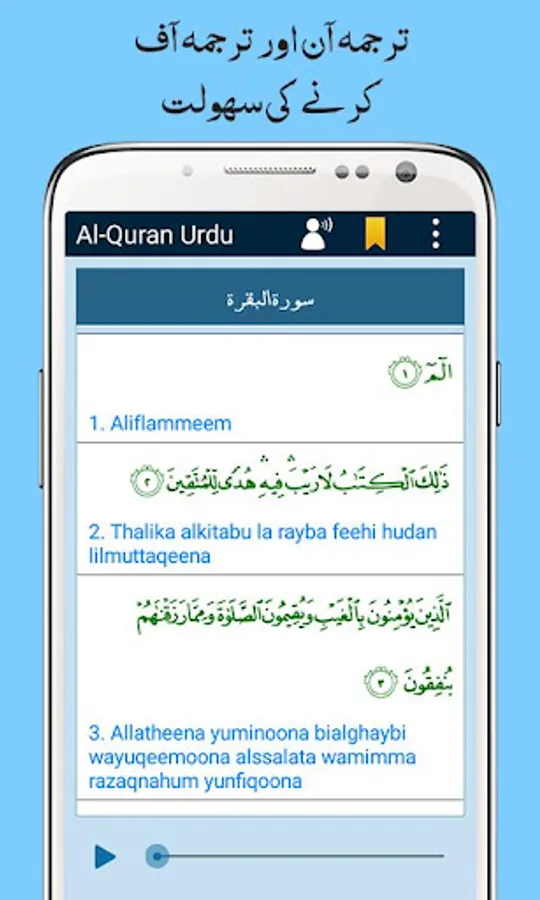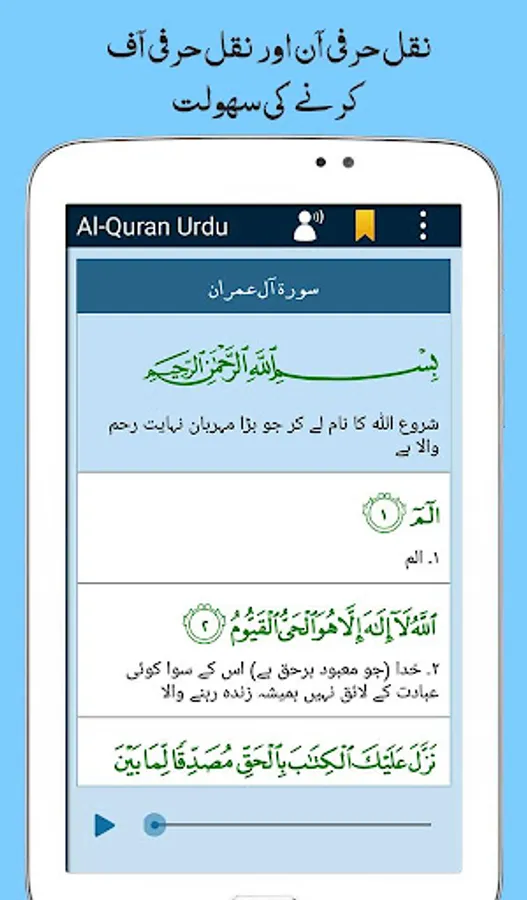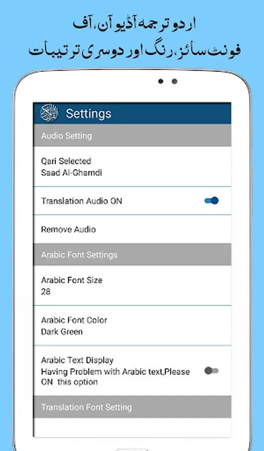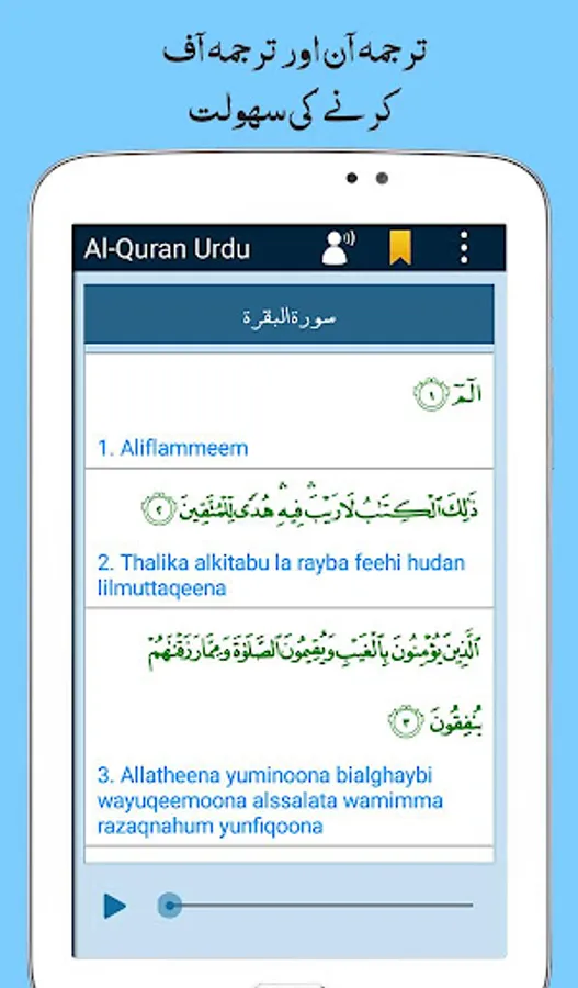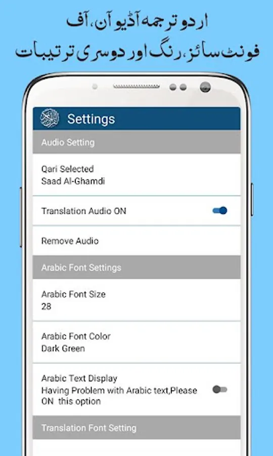 • Play Urdu Translation Audio with Any Qari Tilawat
