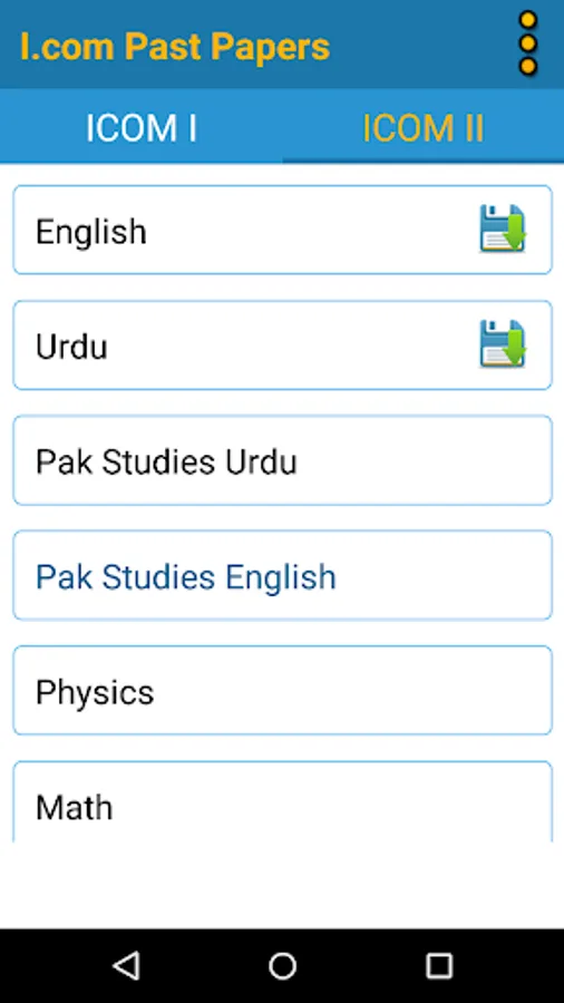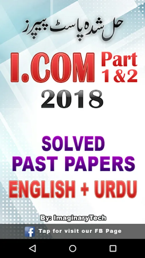 I.Com Part 1 and II Past Papers Free (English Medium and Urdu Medium): Now it’s really easy to prepare for Intermediate (I.com) exam in just 15 days through last 5 year past papers. According to the Paper Pattern of Lahore Board, Gujranwala Board, Sargodha Board, Faisalabad Board, Sahiwal Board, Multan Board, Bahawalpur Board, D.G. Khan Board, Rawalpindi Board, and Mirpur Azad Kashmir Board. This App has many interesting and useful features such as; you can download any subject by click on that subject name for offline use, bookmark your pages for next time use, every subject separate bookmarks, swipe left or right to read next or previous pages and many more.
