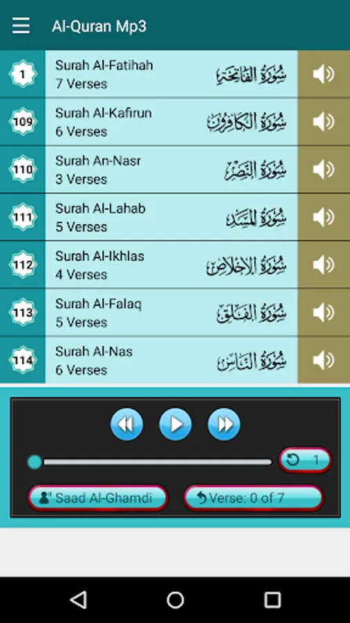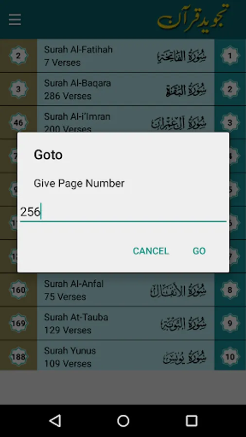 • Goto Ayah (Verse) Feature (Jump to specific ayah of selected surah)