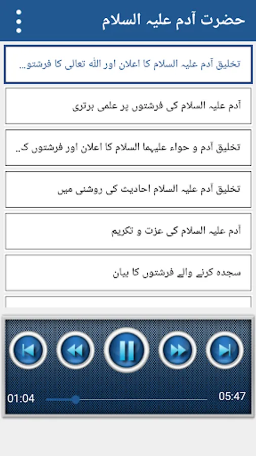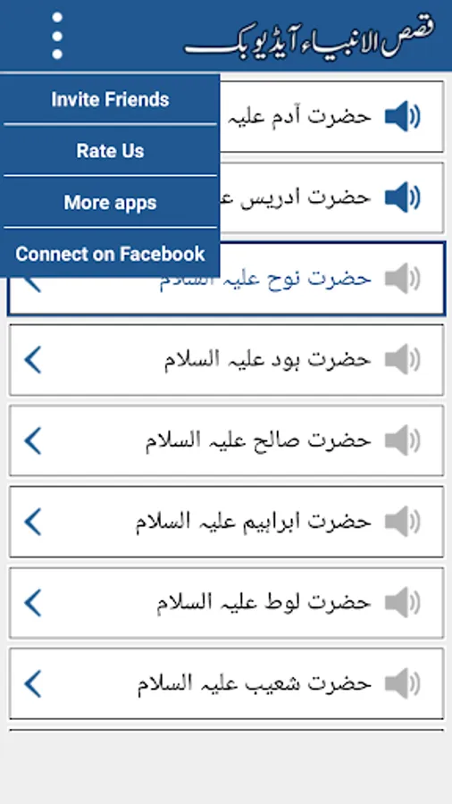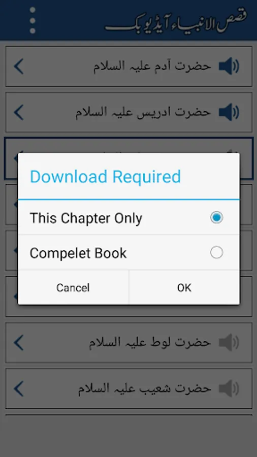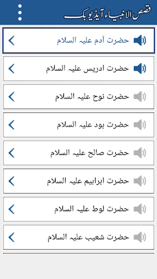 We are presenting Qasas ul Anbiya [Stories of Prophets (Peace be upon them)] Urdu Audio Book. Authentic book in the light of Quran Kareem and Sahih Ahadith, The book is very famous which has faithful and successful stories for the human being. Due to busy life today it’s difficult for anyone to read book and carried it with them. Due to this problem we are presenting this Qasas ul Anbiya Audio Mp3 book free app for everyone. You can use it anywhere, everywhere without any problem. This Audio Book categorized into chapters according to prophets and their famous stories further categorized into Topics which will be easy for everyone to listen any specific topic of any prophet (PBUH).