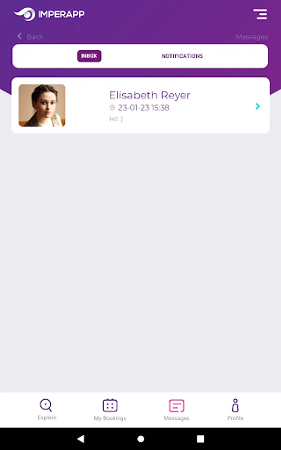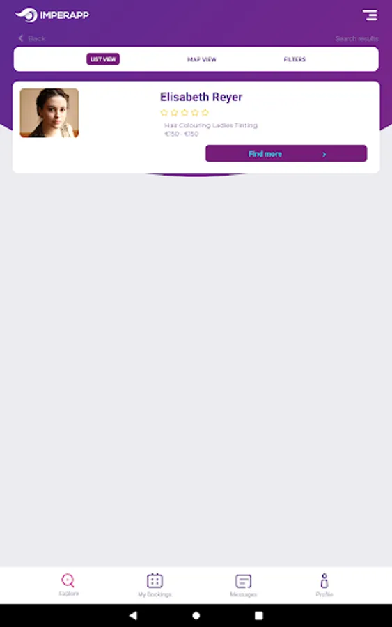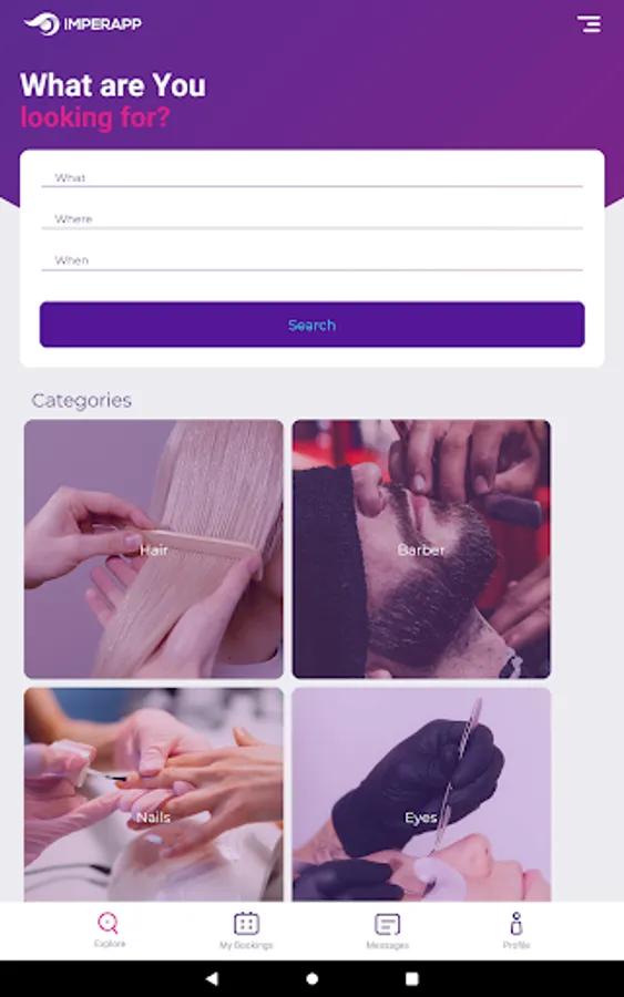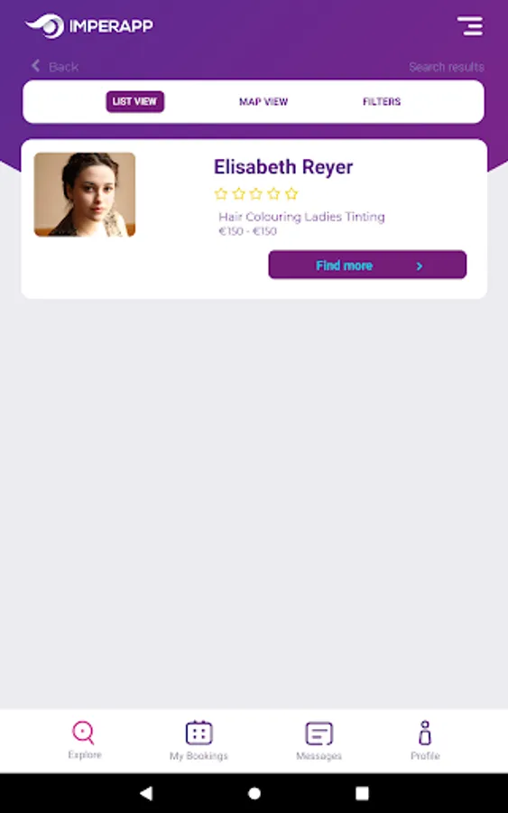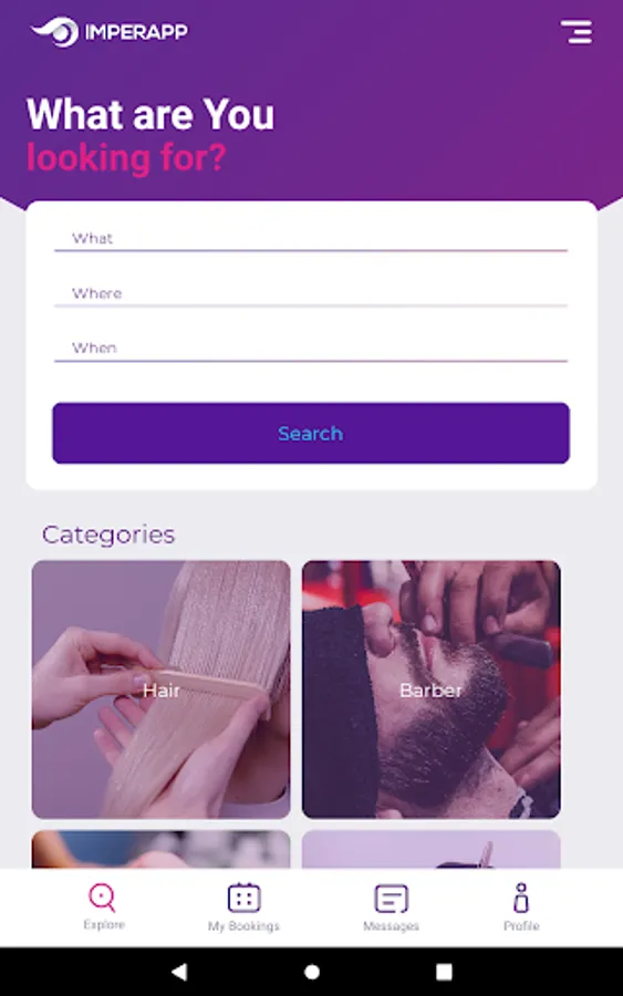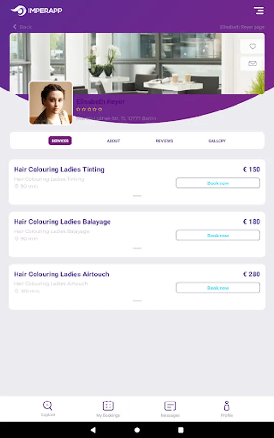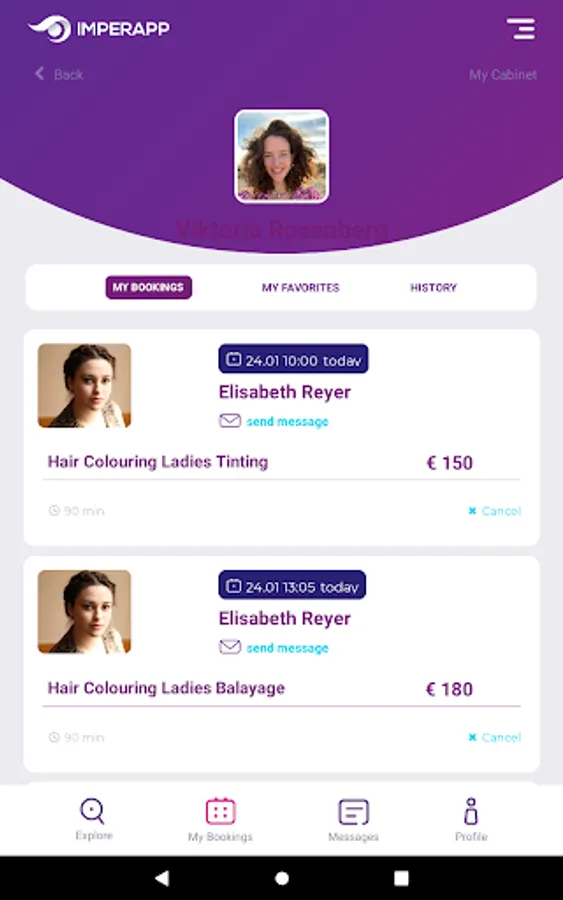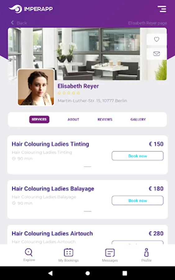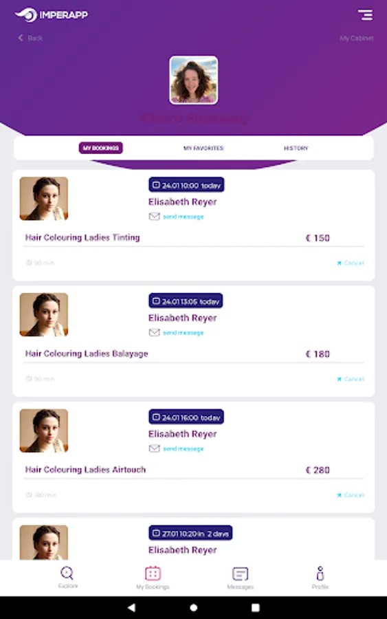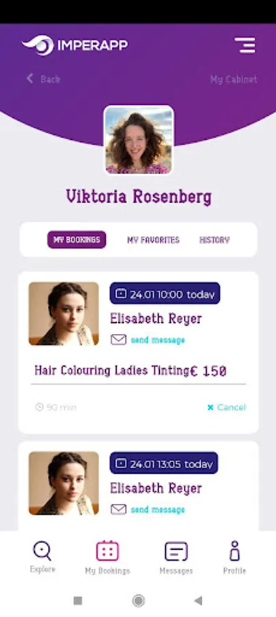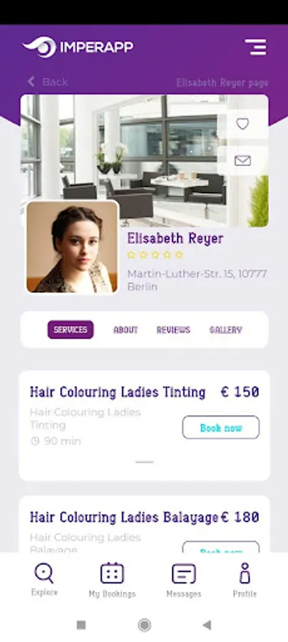 In the ImperApp application, we provide users with a complete information about the services of the selected master, simplify communication between the client and the service provider, as well as simplify the appointment to a specialist to one click. A photo gallery of the master's past works and feedback left by clients after the procedure will help you choose the right specialist — now it has become easier to find the perfect service! And if there are any questions left during the selection process, you can always find them out from the master directly by sending a personal message in the messenger.