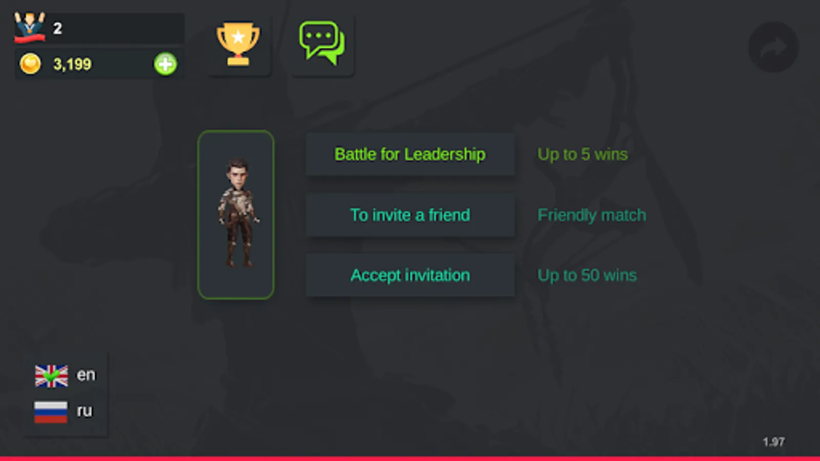 - Battle for Leadership. In this mode, a random opponent of a rank close to yours is selected for you. In case of victory over him, you advance in the leaderboard, as well as get coins. For coins, you can unlock new characters and bows.