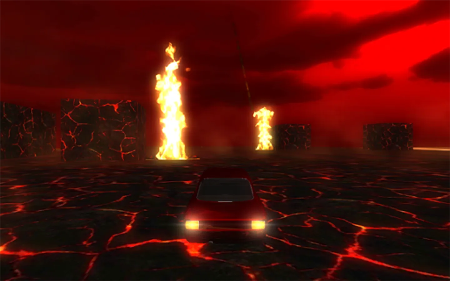 The Thorny Path - drive the car through hell. Go around caves, lava flows, pillars of fire and other obstacles. Try to get the best time on the track. A variety of obstacles will suddenly appear on the way of your car. Be careful and dodge them. Also hordes of zombies are roaming the hellish plains. You can ram them at full speed. Try not to lose a second of time and get to the finish on the optimal route. Practice and improve your time.