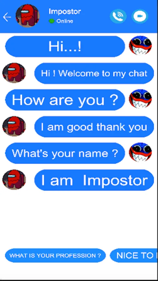 Impostor Fake Video Call has made for many boy and girl who love Impostor talking with video call and surprised to your friends and family.