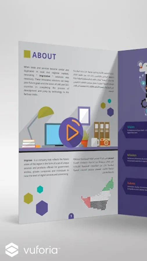 Impress App work only with our printed company's profile, the goal of it showcase the company's profile in a creative way, and makes it updated continuously to know our updates such as our new projects, products and clients.
