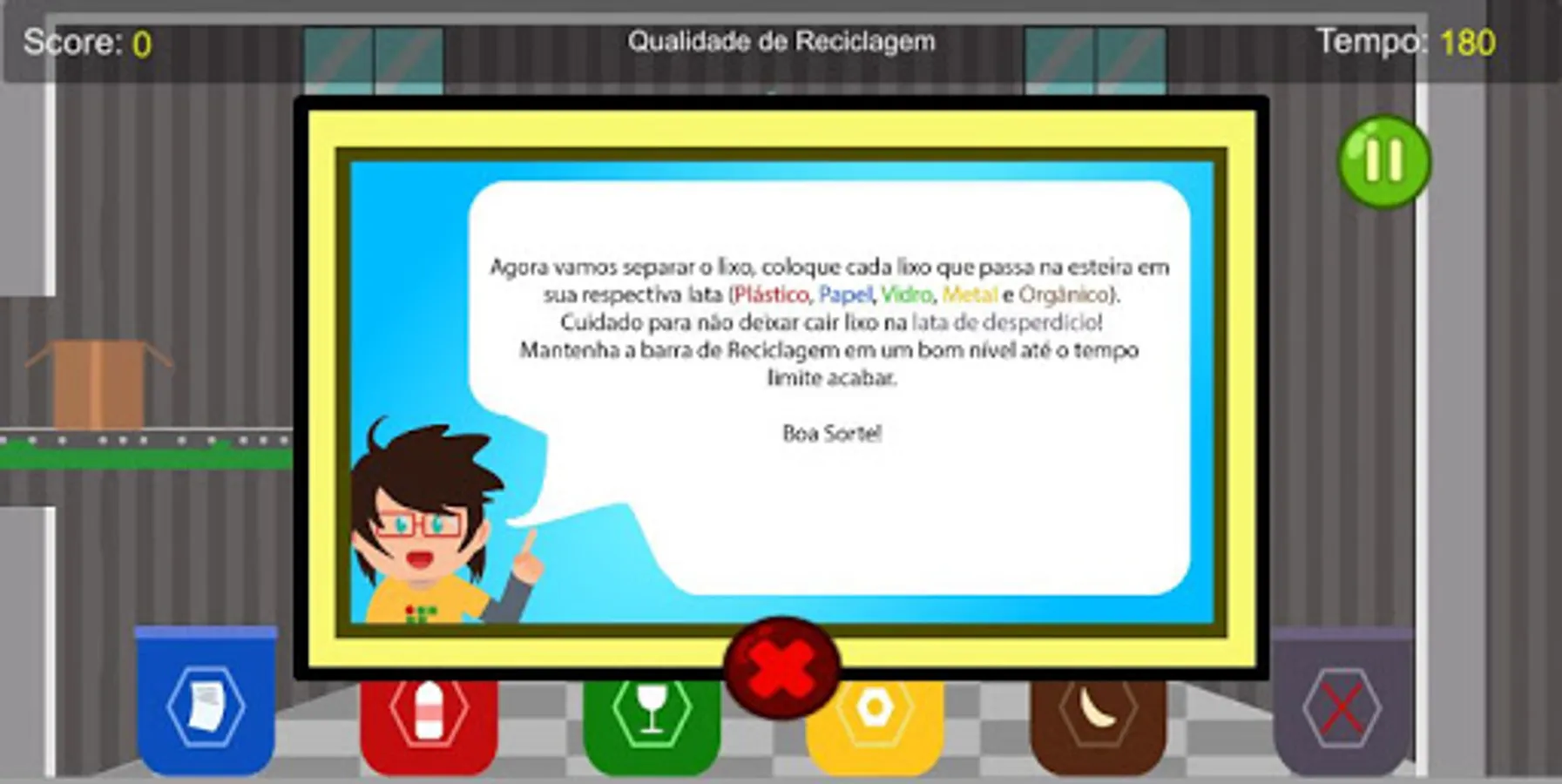 Meet the adventures of “KAL”, a character created at INQ.IFBA's INNOVATION & QUALITY PORTAL. This Portal will help you learn about many topics and have a great time at GinQ Games. In this second adventure created by Paulo Kaedo, our Game Design and Isabela Gusmão, our Graphic Design, you will know several phases in EcoDivertidos, an educational game developed at the Bahia Federal Institute of Science and Technology Education - Vitória da Conquista Campus, under the Coordination from Profa. Grace Bittencourt. The correct use of water, the conscious consumption of electricity in everyday life, the proper disposal, separation and recycling of waste will be part of the steps you should know in the game, and of course have a lot of fun.