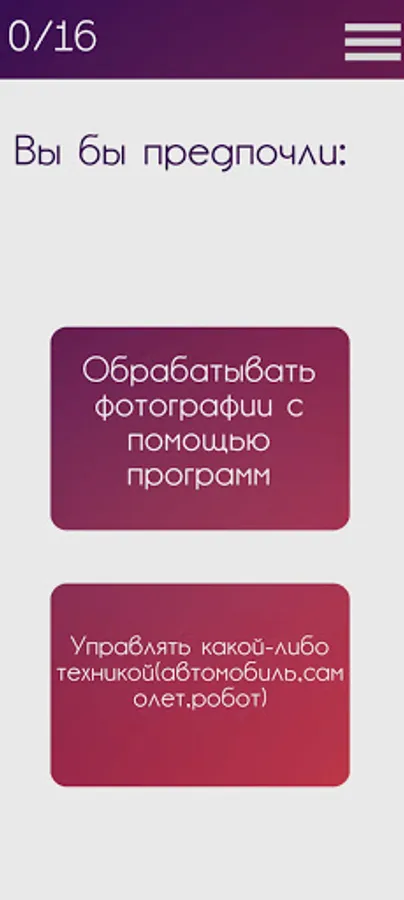 ProfTest is an application that will let you know your future profession.