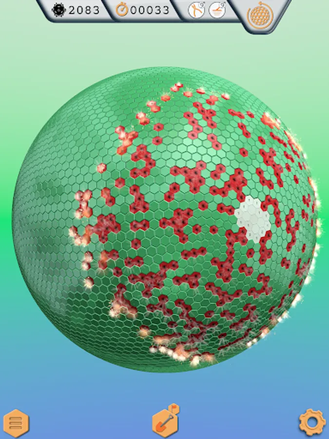 With hexagon, triangle and classic square game modes, 5 different globe sizes and 4 difficulty settings you can be playing on anything from tiny hexagonal globes made of 92 tiles to colossal triangle globes with 20,480 tiles.