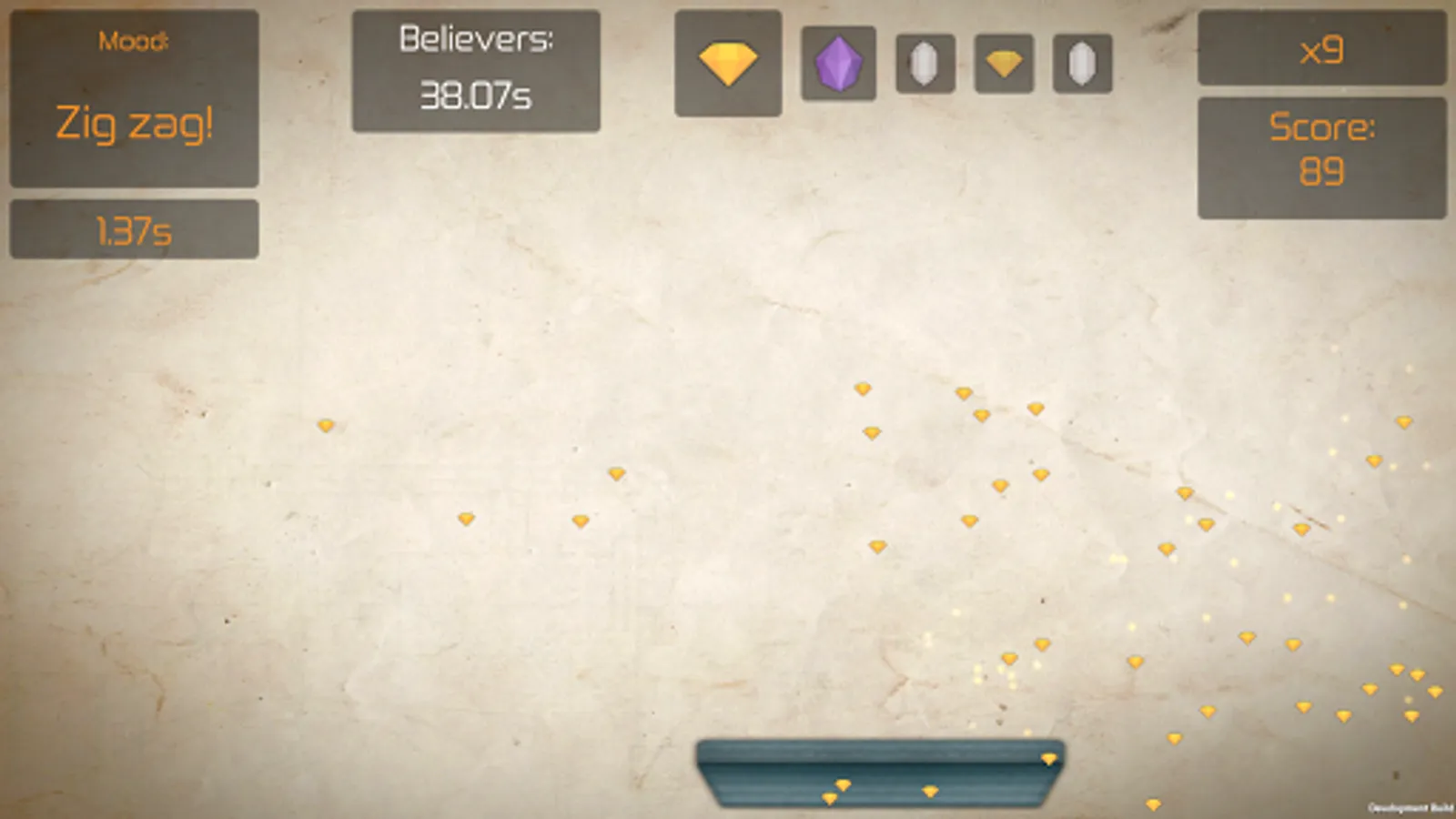 Gem God has unique mechanics - in this arcade game you are a god furiously throwing things down the screen to the joy of your believers.