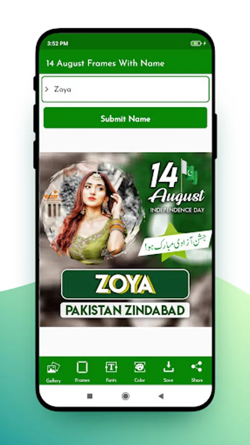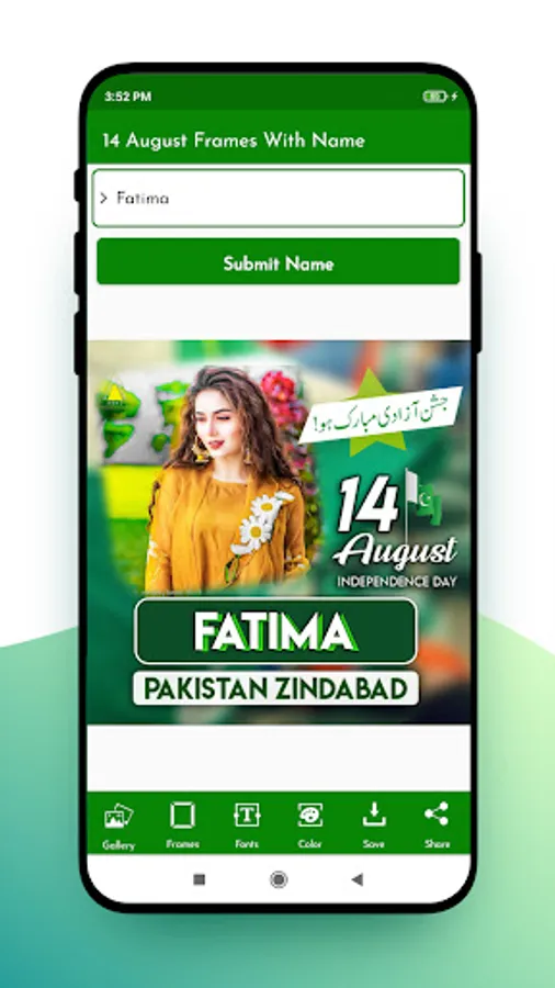 The 14 August Frame With Name DP Maker app is a free app for Android devices that lets you add your name to a beautiful Pakistan Independence Day photo frame. With its wide variety of frames and customization options, you can create a truly unique and patriotic photo to set as your display picture (DP) on social media.