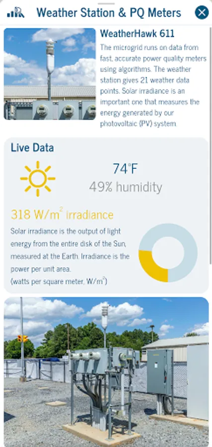 On-site functionality allows the Mount Holly visitor to explore the microgrid equipment with the following features/content: