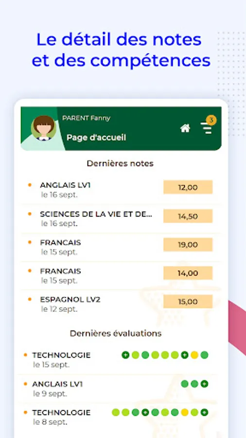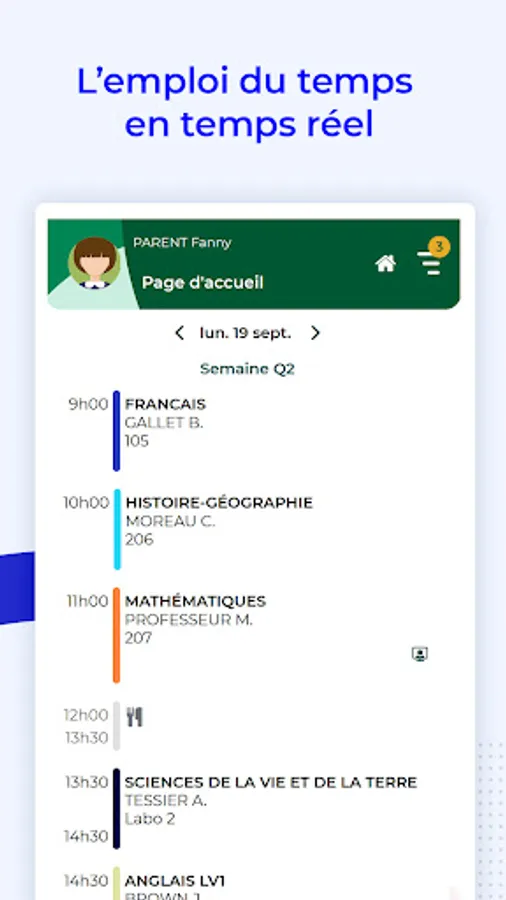From their smartphones, Students, Parents and Teachers access their data in real time, in a secure environment, wherever they are.