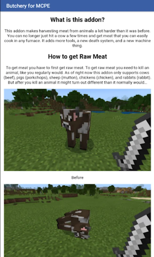 Butchery Addon is a free collection of mods, addon and maps for Minecraft PE.