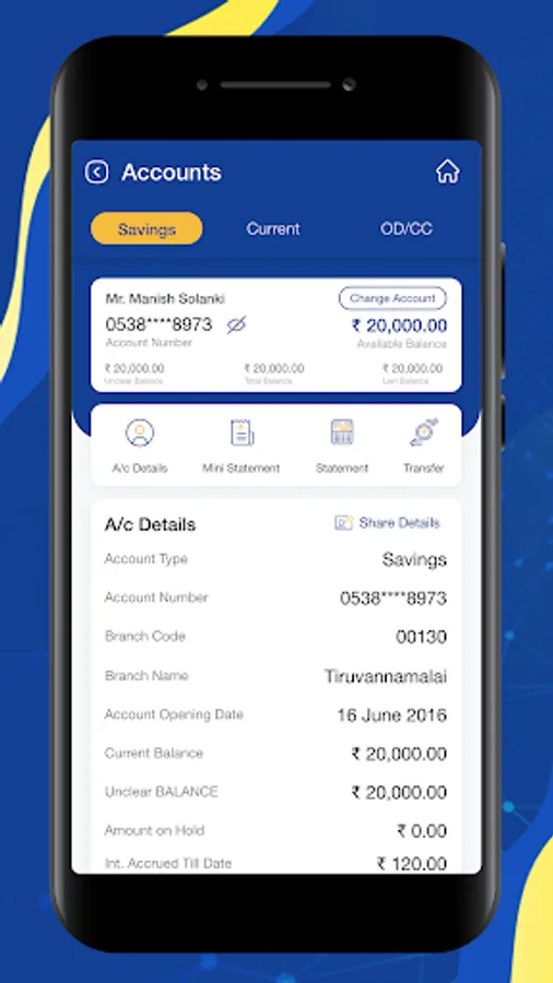 • Detailed account information (Savings / Current / Deposit / Loan / PPF)