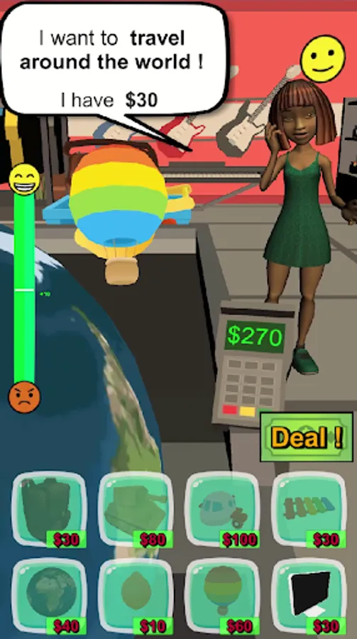 Listen to cutomers needs and sell items to buyers coming to your shop ! Make a lot of money !