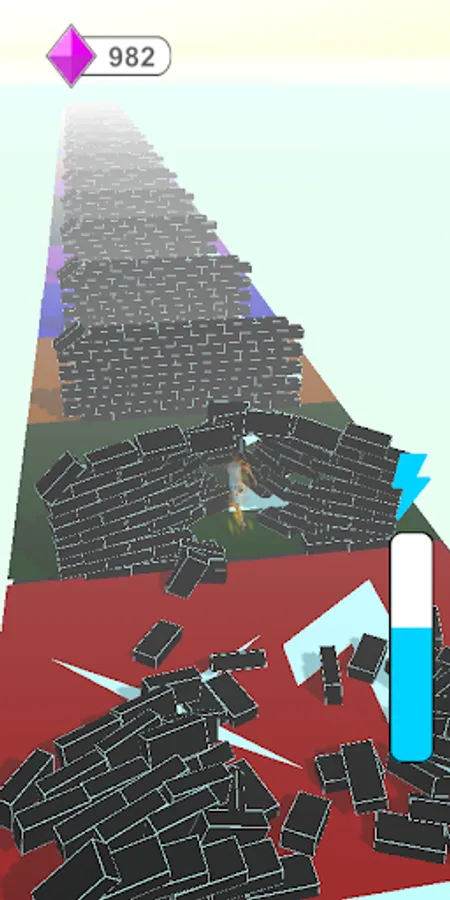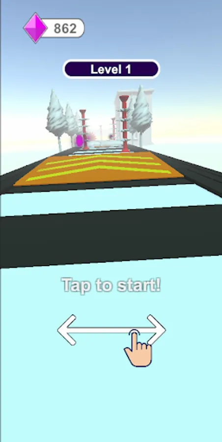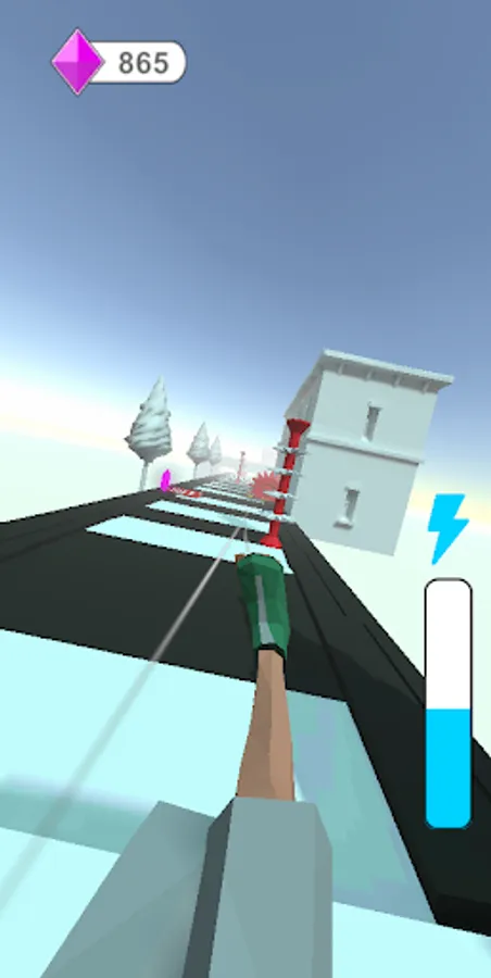 Collecting the orange arrows increases our speed and allows us to earn extras for reward. If we collect the red ones, which are the opposite of these arrows, our speed slows down and we lose the prize we will win. If we touch the red obstacles or fall down the game is over.