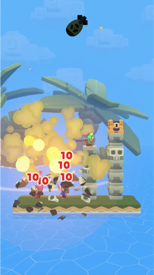 Build your ship from parts. Who will you add to your team? A banana that throws grenades, a marshmallow man with a machine gun, a pink teddy bear with a grenade launcher? Choose and smash the enemy ship or island!