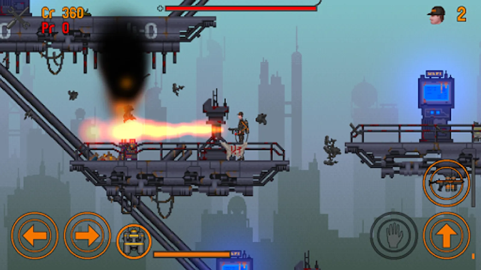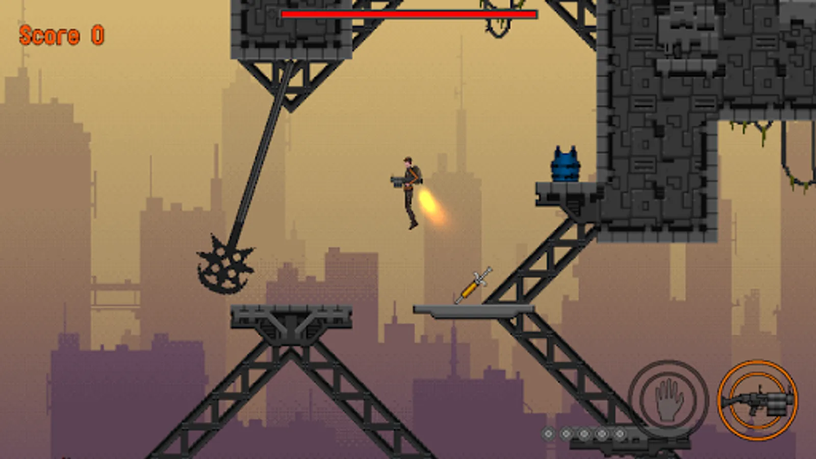 Blast your way through the watselands in this intense 2D pixel style platformer.