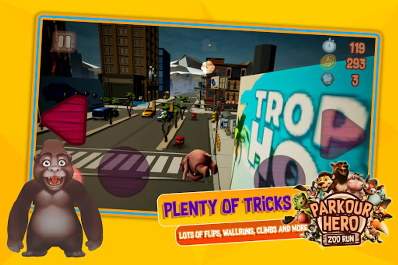 The variety of available animal characters to choose from, different levels with different challenges, the option to upgrade the animals, unique tricks and stunts to perform, and 3D graphics with smooth animations are just a few reasons that make Parkour Hero your #1 choice when it comes to finding the best animal runner and jumper game for Android.