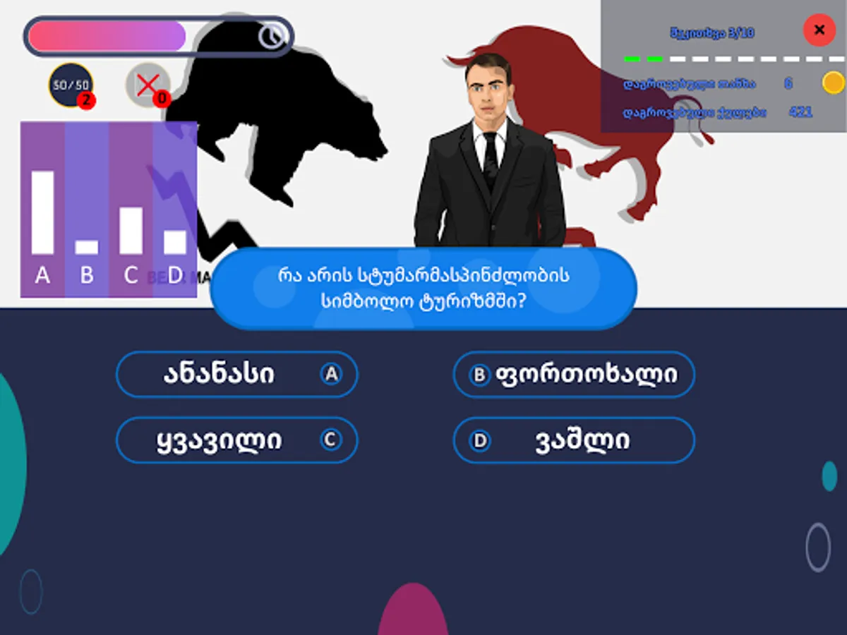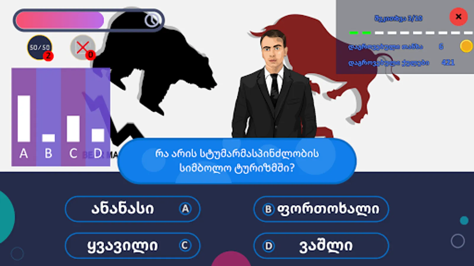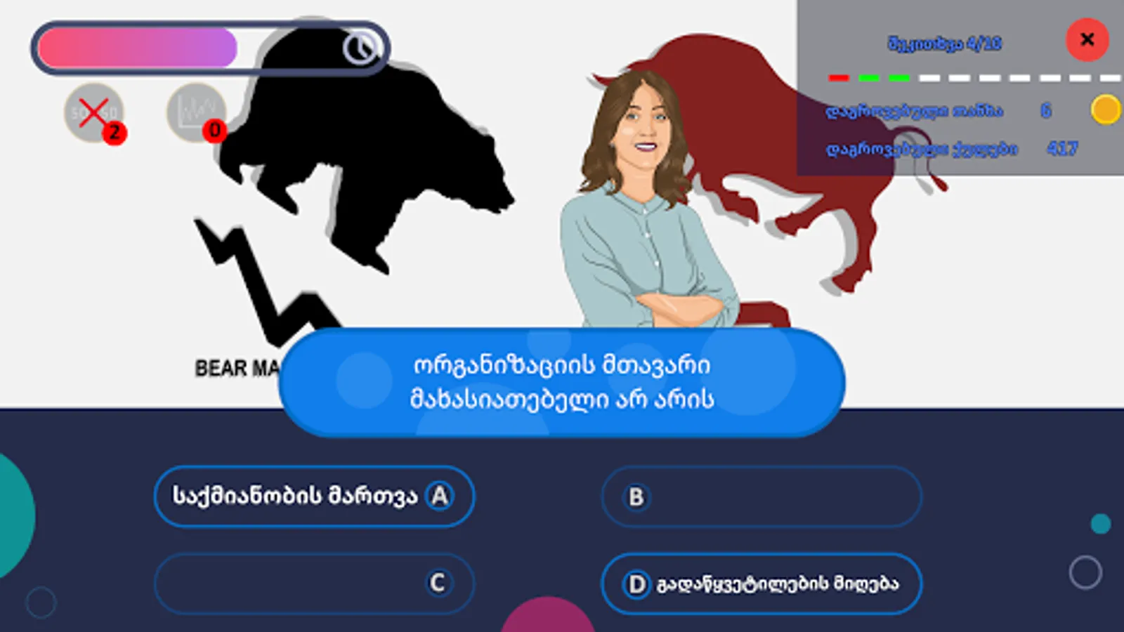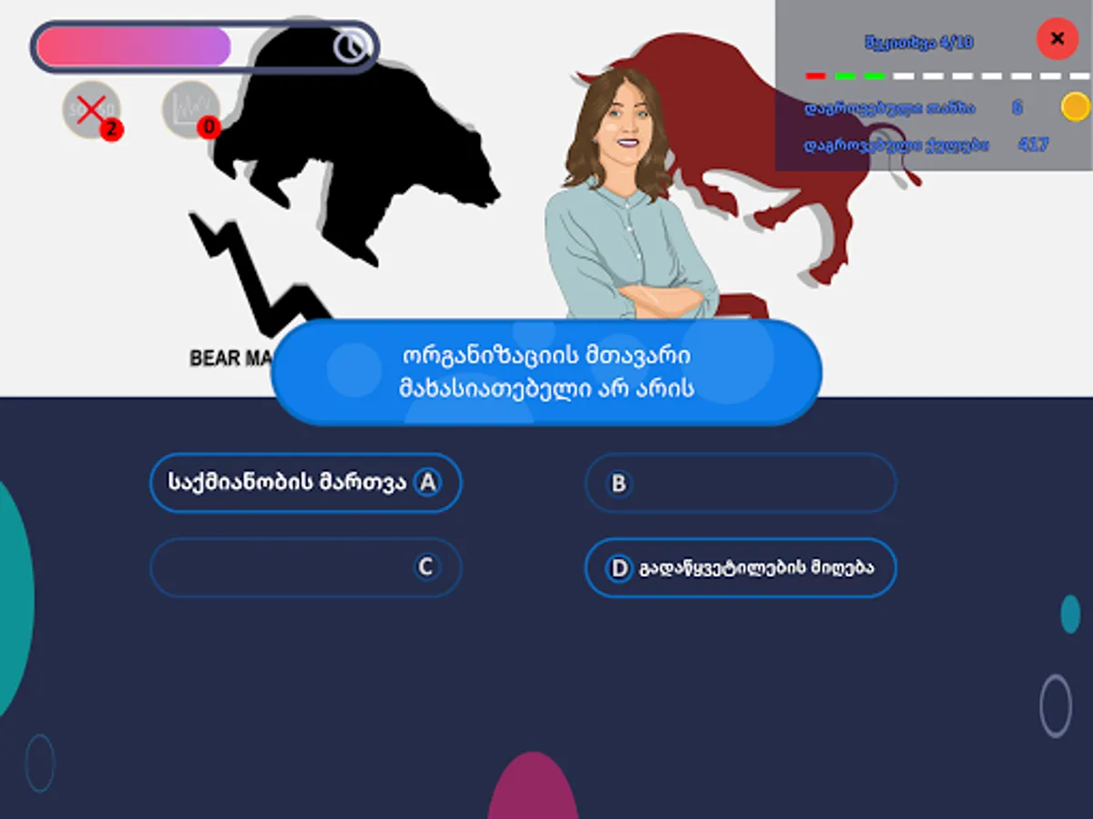 In this game you can see also the head of the departments, they will ask you questions and if you pass the stages with the success you will be able to answer questions from the medium and hard levels.