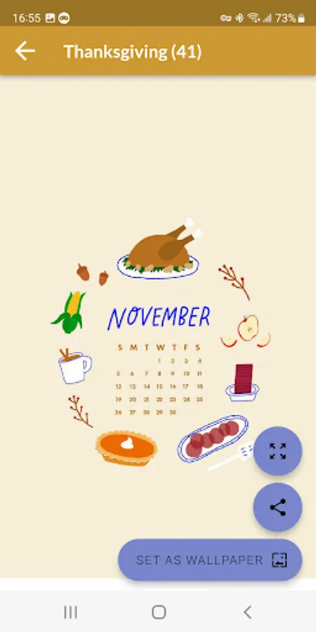 This app was created especially for the Thanksgiving holiday, here you will find a large selection of Thanksgiving day wallpapers.