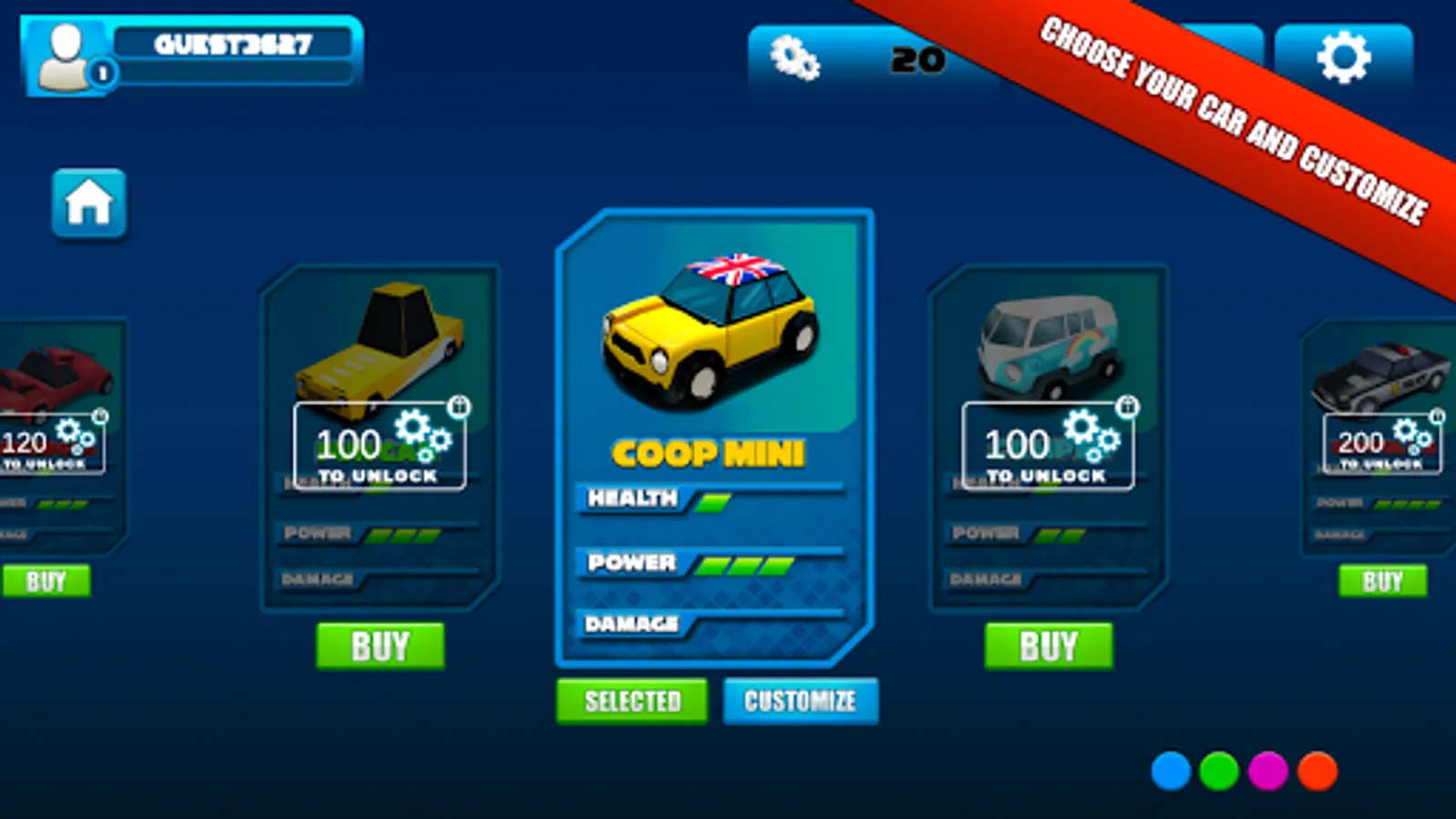 CARS OF BOOM is a fast-paced action multiplayer game where your main objective is to stay alive as long as possible, while collecting weapons and destroying your opponent vehicles with it. Collect gears strewn around the map to upgrade your vehicles and power-ups to a God-like level.