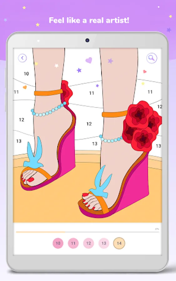 ✔ You need to follow the numbers in coloring area and a special color palette suggests you what color each number corresponds to;
