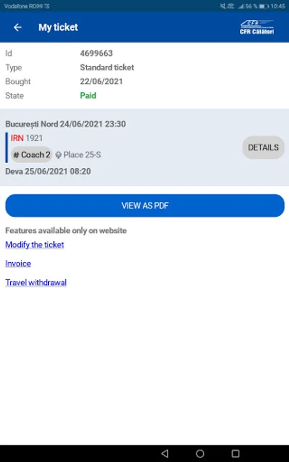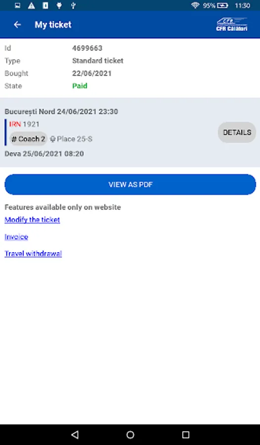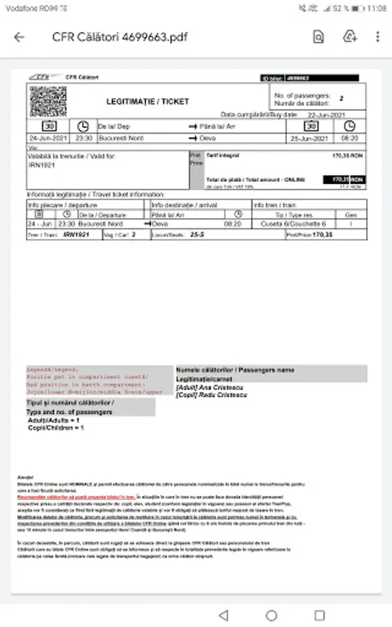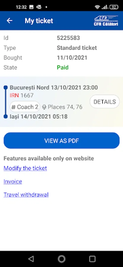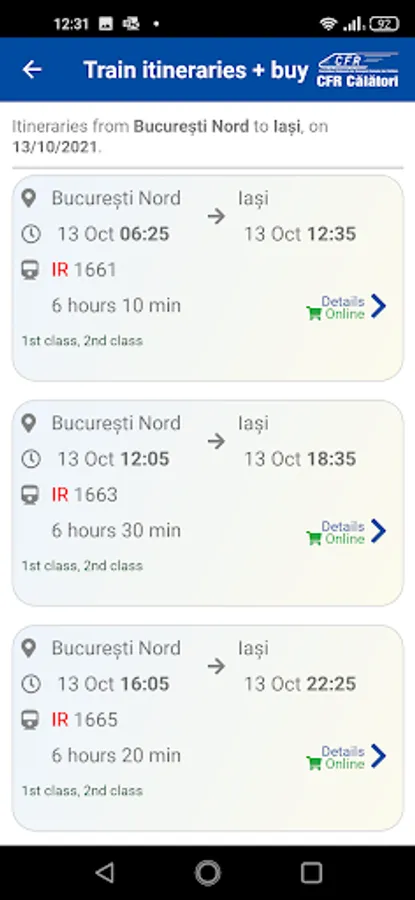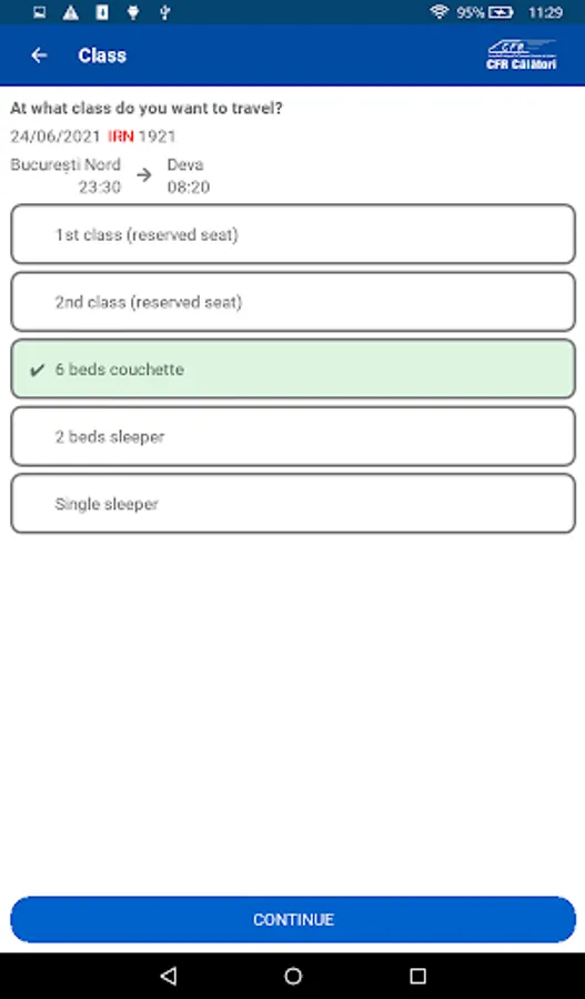 Buying tickets online is very easy. You need a CFR Călători account that you easily create with your email. Select the departure and destination stations and select the train with the hours that fits for you. Choose which class you are travelling to and the number of passengers. After you see the transaction price, you will fill in the passengers' first and last names. At the end, enter your card details and complete the order. You will receive in the app, by SMS and email an Id (ticket identification number) that you show to the conductor at checking tickets. Simple!
