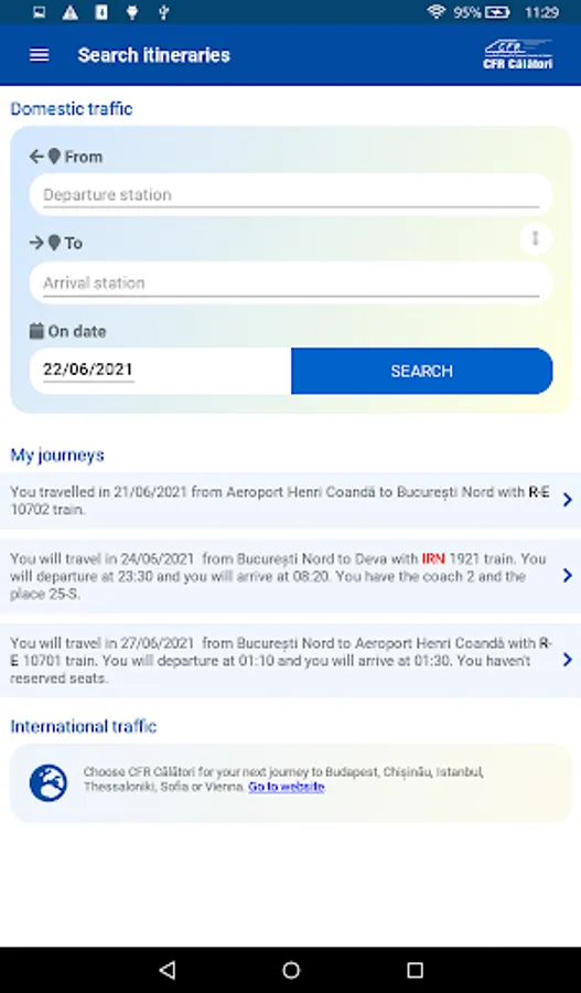 The next trip is now easier to plan. Using the CFR Călători for Android app you can quickly see trains to your future destination.