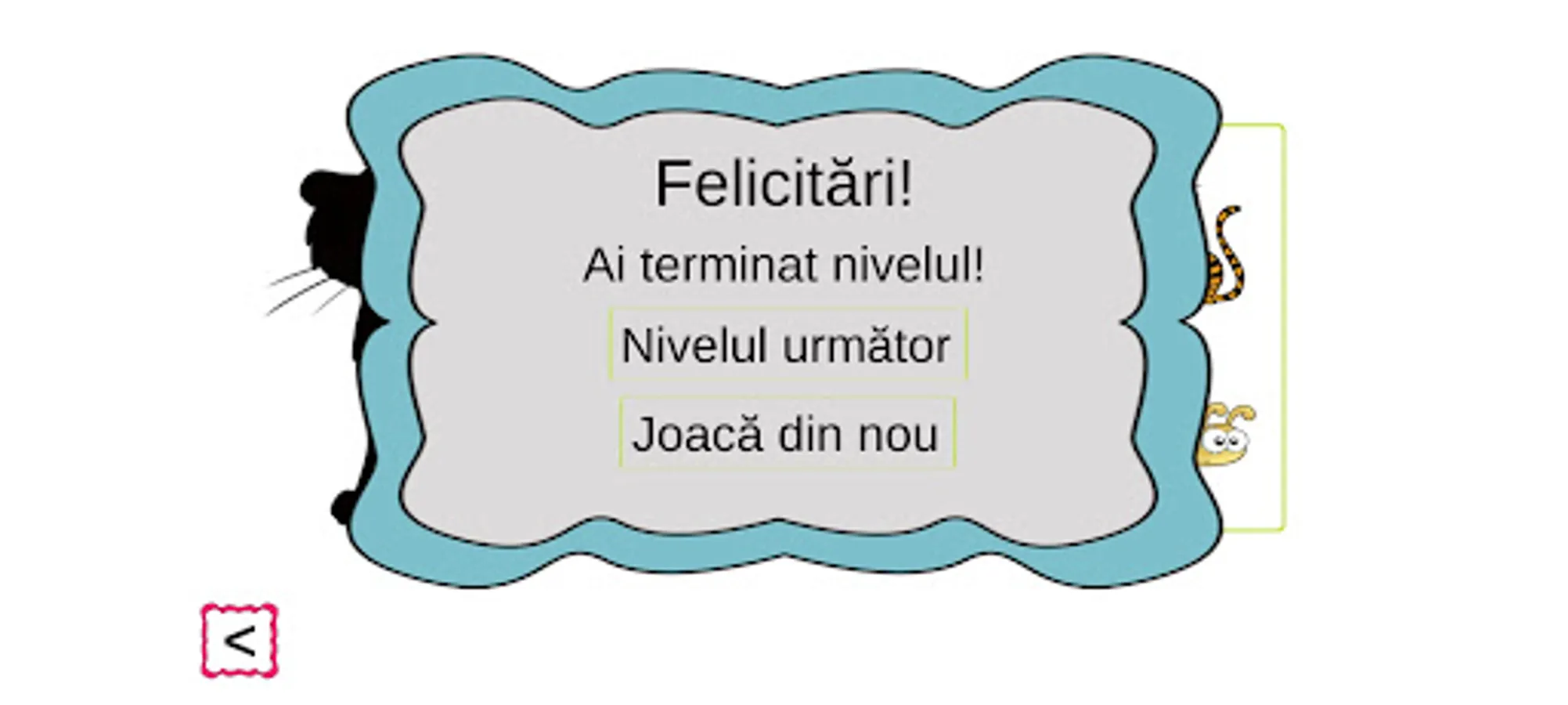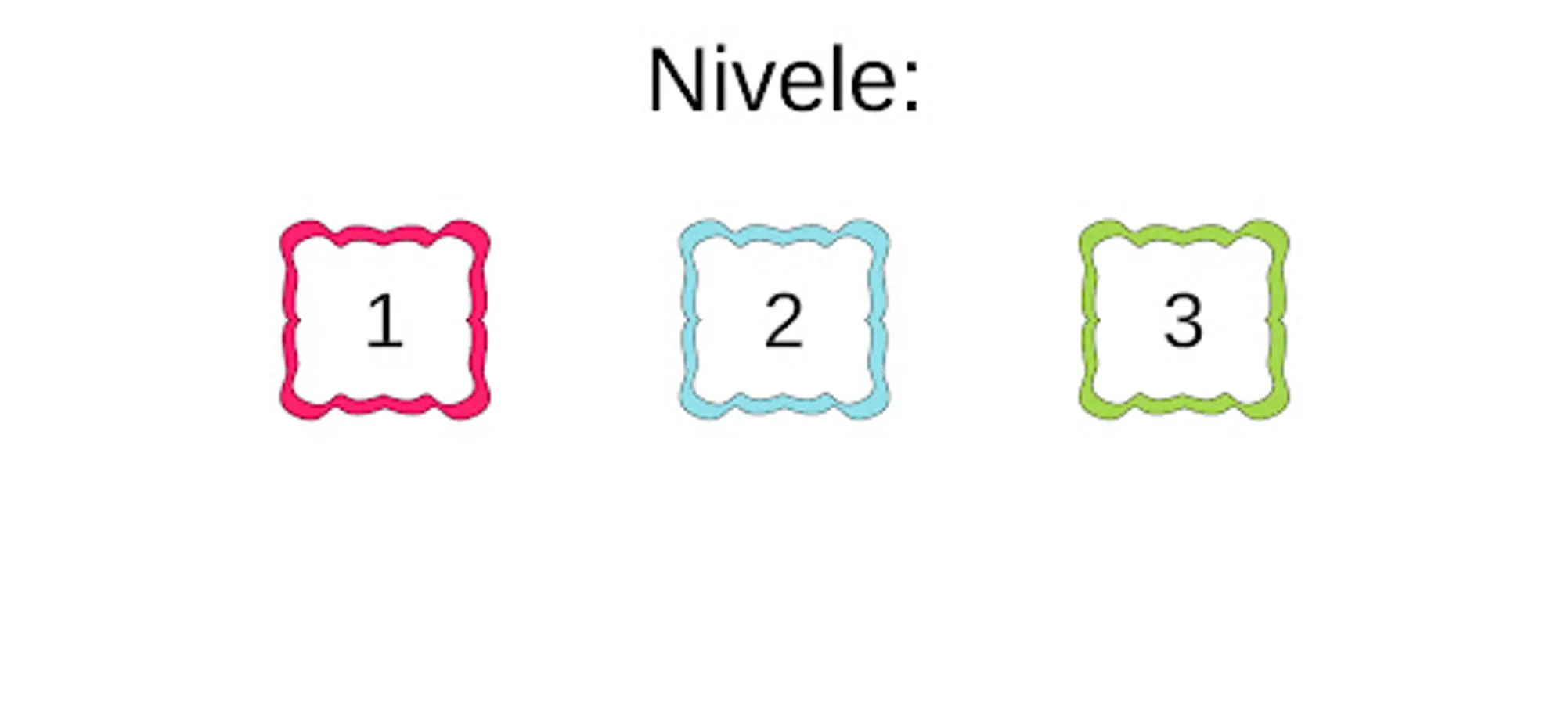 The application is made on 3 levels of progressive complexity. At the first level, the child will choose the correct picture from 4 animals, at the second level from 6 animals, and at the third level from 9 animals.