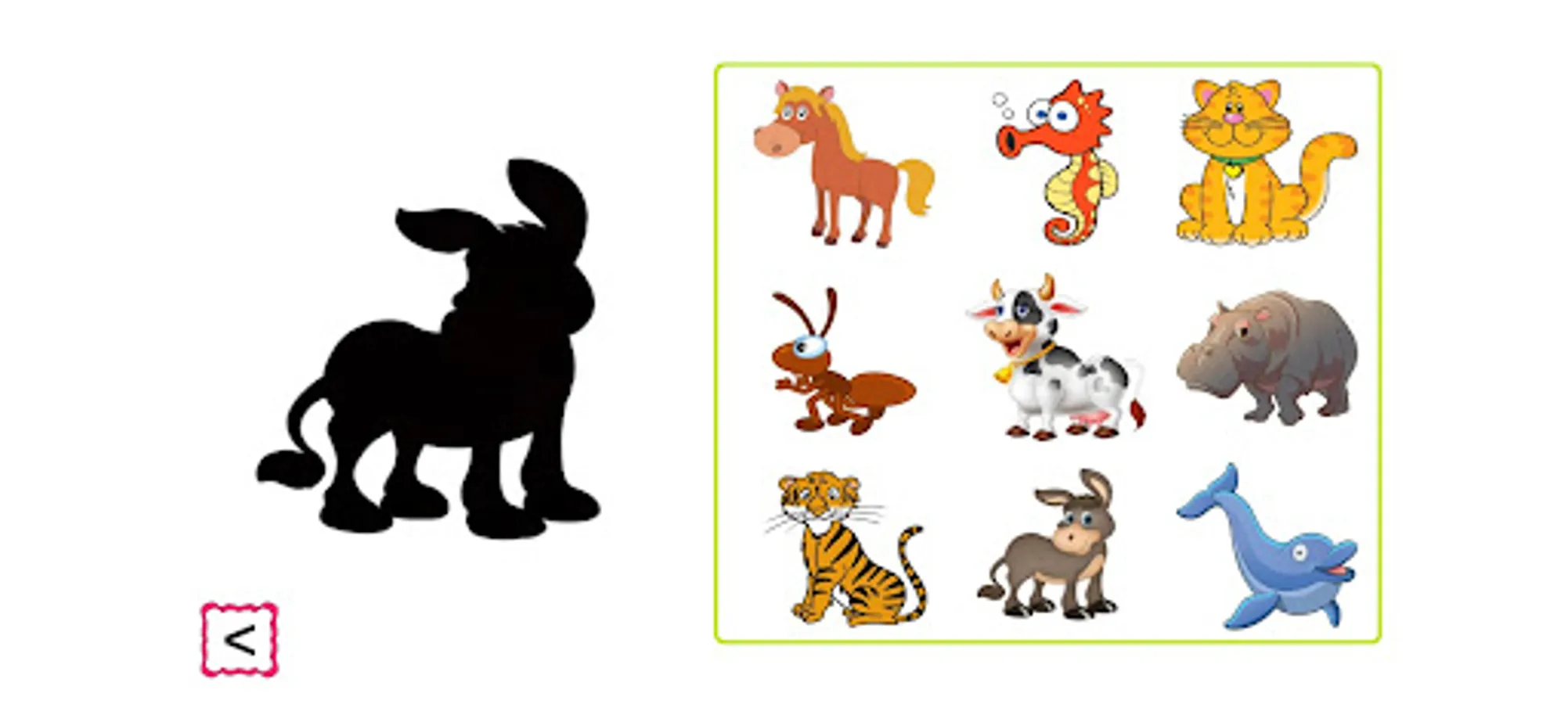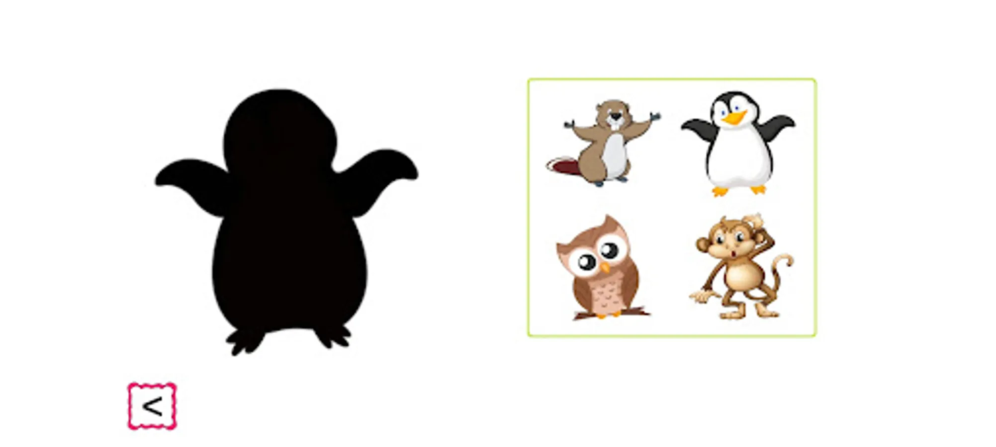 Animal Shadows contains 30 animal shadow pictures and over 150 combinations of 40 different animals for each level.