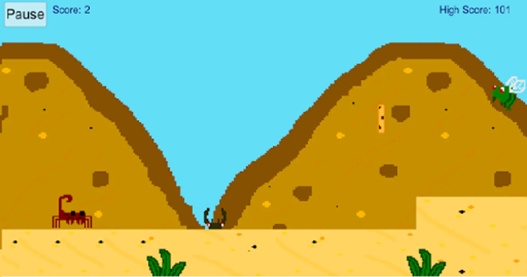 The cookie store goes out of business after being stepped on by a camel! Help Chippy the scorpion and his friend Sara the snake as they go on a fun run through the hot desert weather in attempt to gather all the missing scorpion cookies that flew across the land after the shop was crushed! Make sure you avoid giant ant lions and biting sand flies along the way! Good luck!