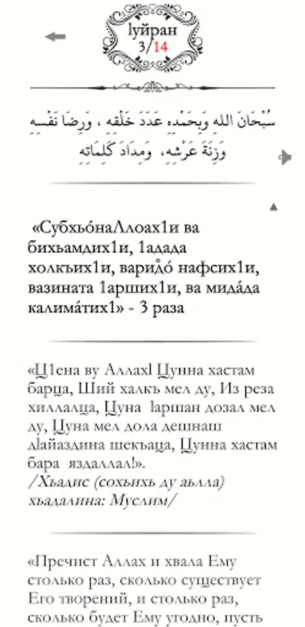 H1okhu zaini t1ekh vovshakhtokhna du 1uyranna a, suyranna a vain Payhamara (Allahlera salam marshall huliila tsunna, tsunan dozalashna a, tsunan askhyabashna a, radyaAlumach1 dohnaushnaushna. H1okhu do1anash a (azkarasha) Allah1an nitsk'atsa, t1argamo (shield) sanna larviir vu stag b1argah a, bozbuanchalah a, khidolu vochu h1umanakh a, x1ora diynah doshush hilcha.