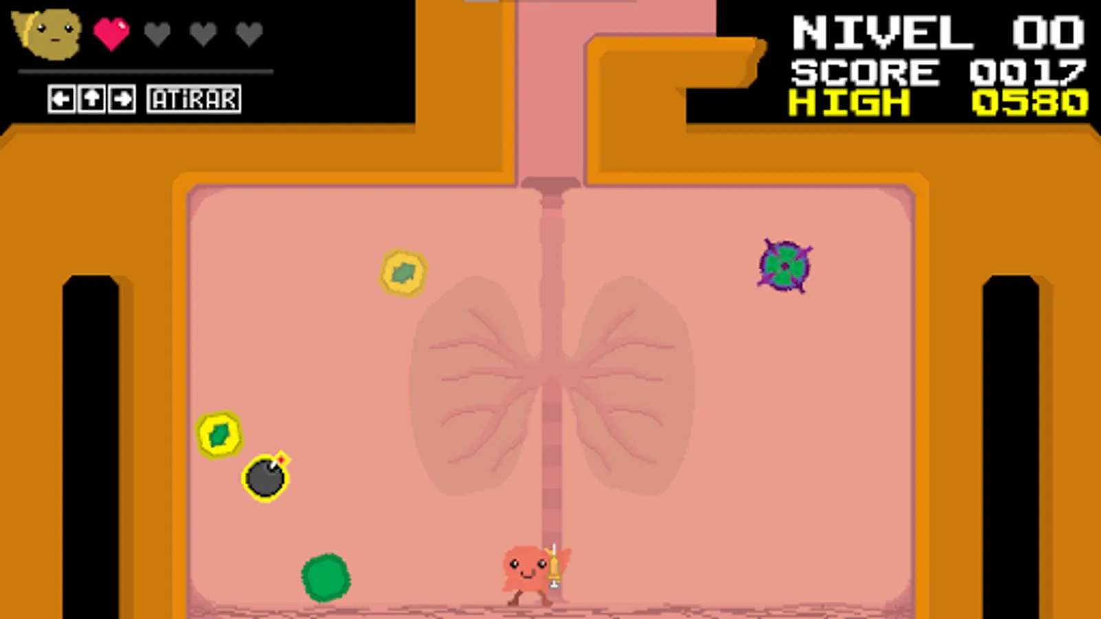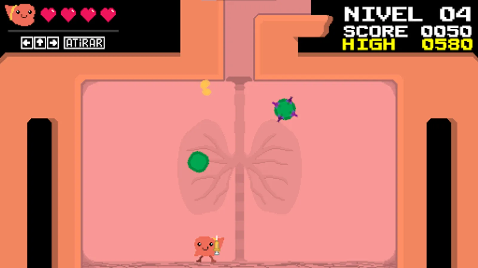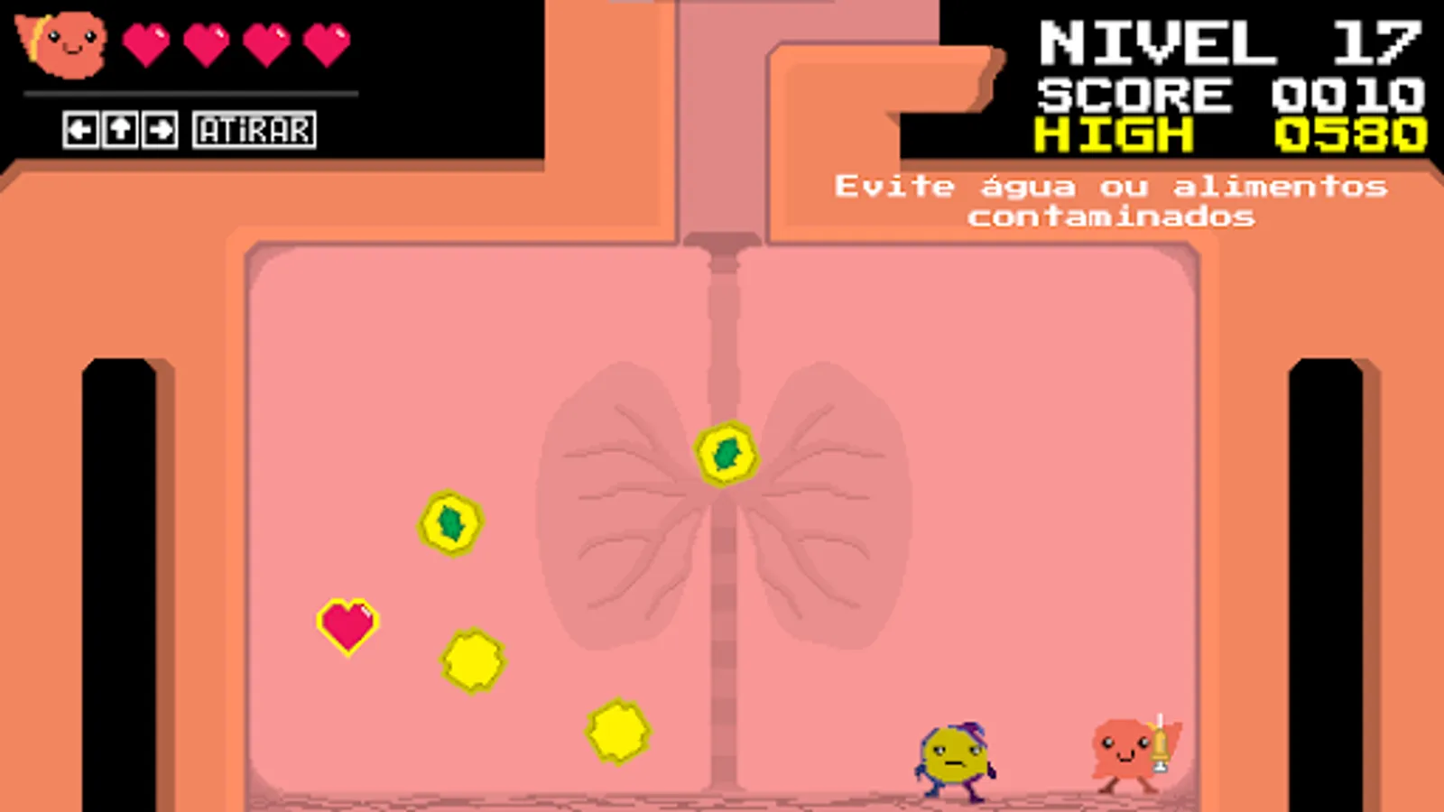 In "Desintox the Figado" you are the fearless Desintox, determined to protect your body! Shoot down the toxins, viruses and bacteria that threaten your liver health.